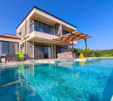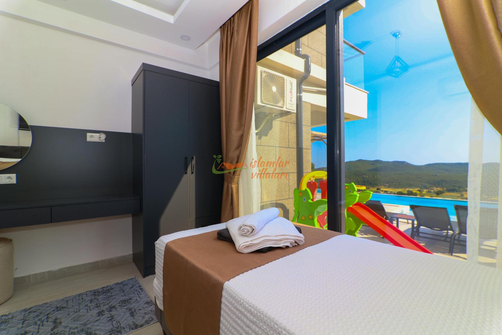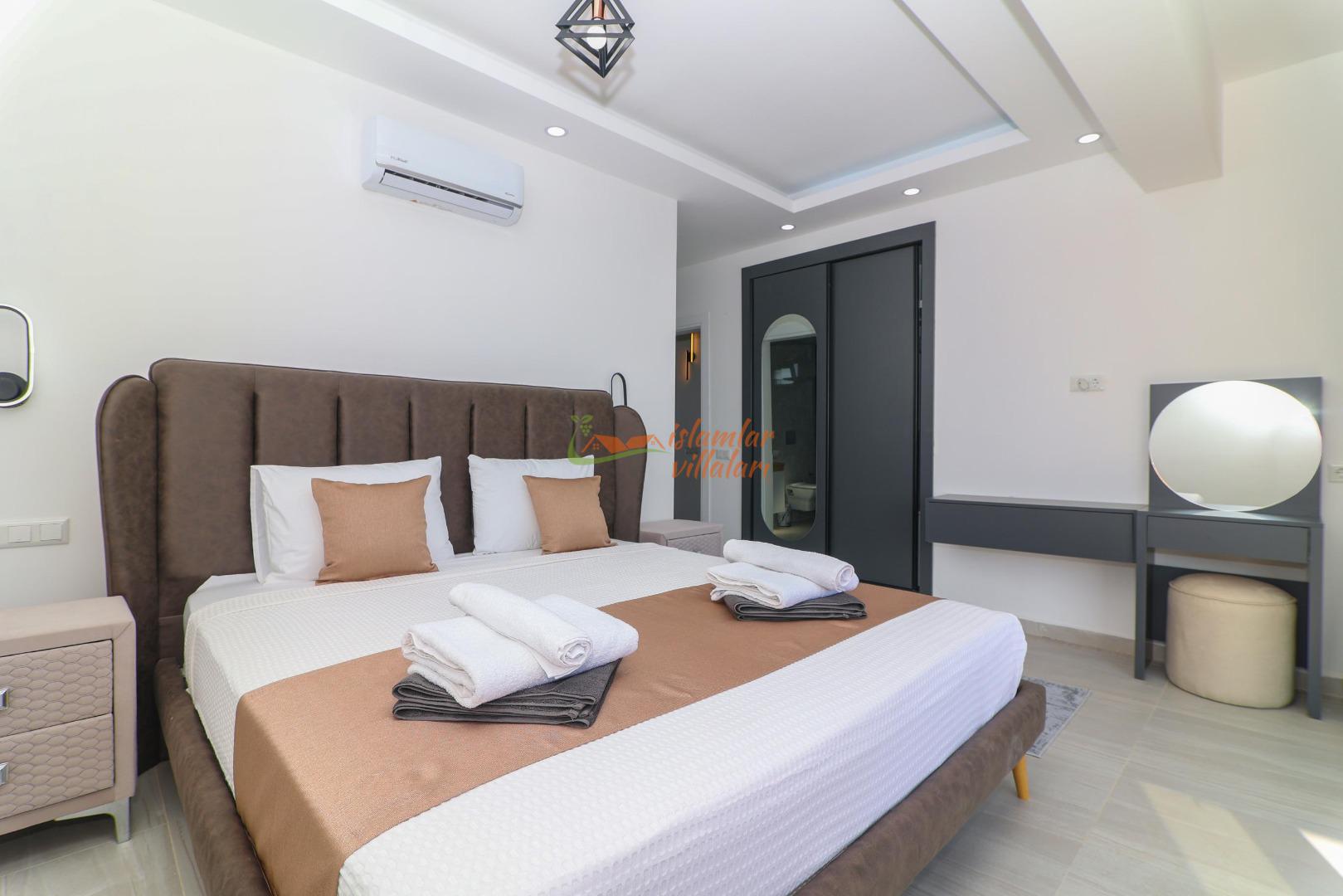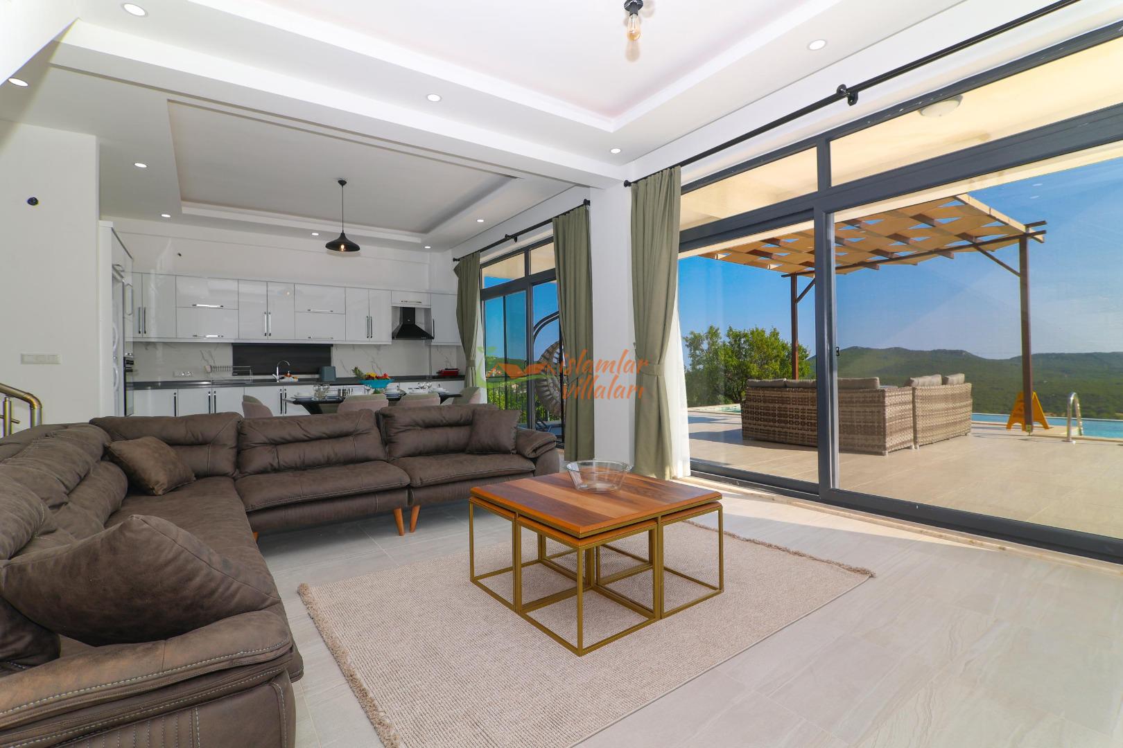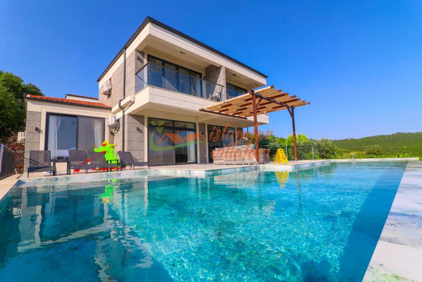 Geniş Özel Yüzme Havuzu: Villamız, oldukça geniş bir yüzme havuzuna sahiptir. Gün boyu güneşin tadını çıkarabileceğiniz bu geniş havuz, hem ferah bir yüzme alanı hem de keyifli bir serinleme imkanı sunar.