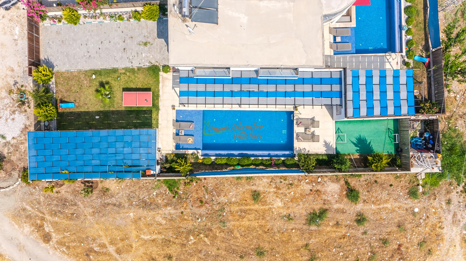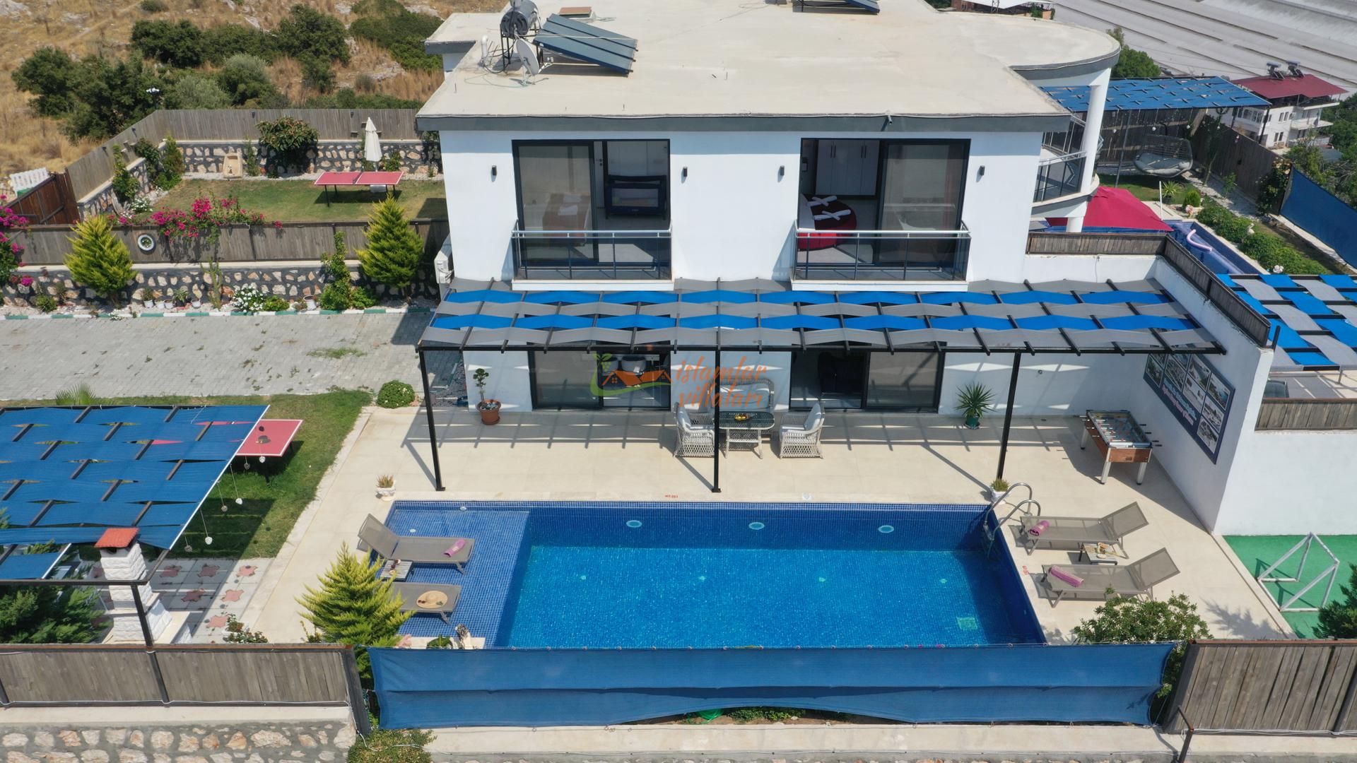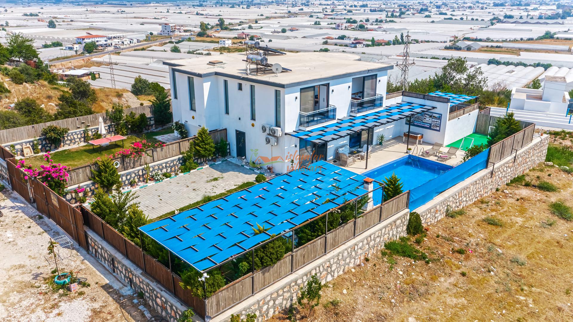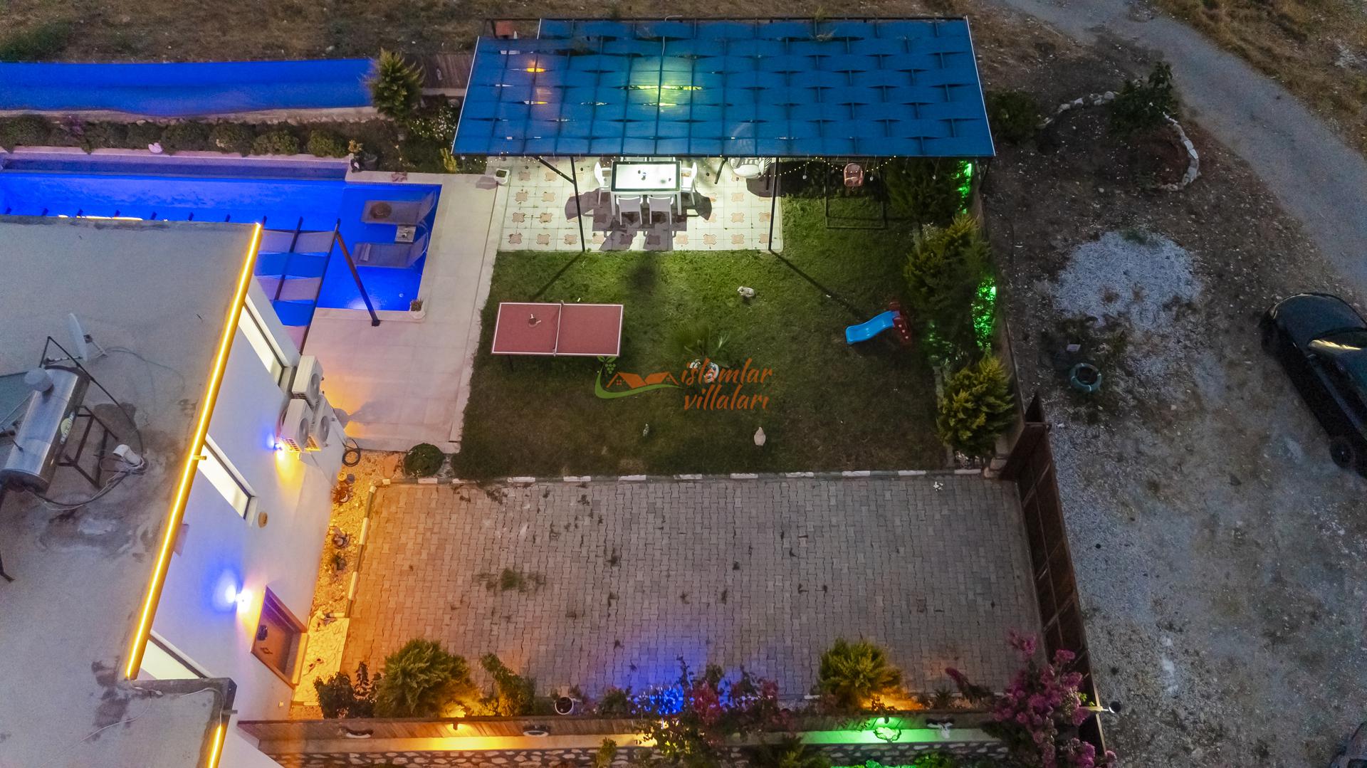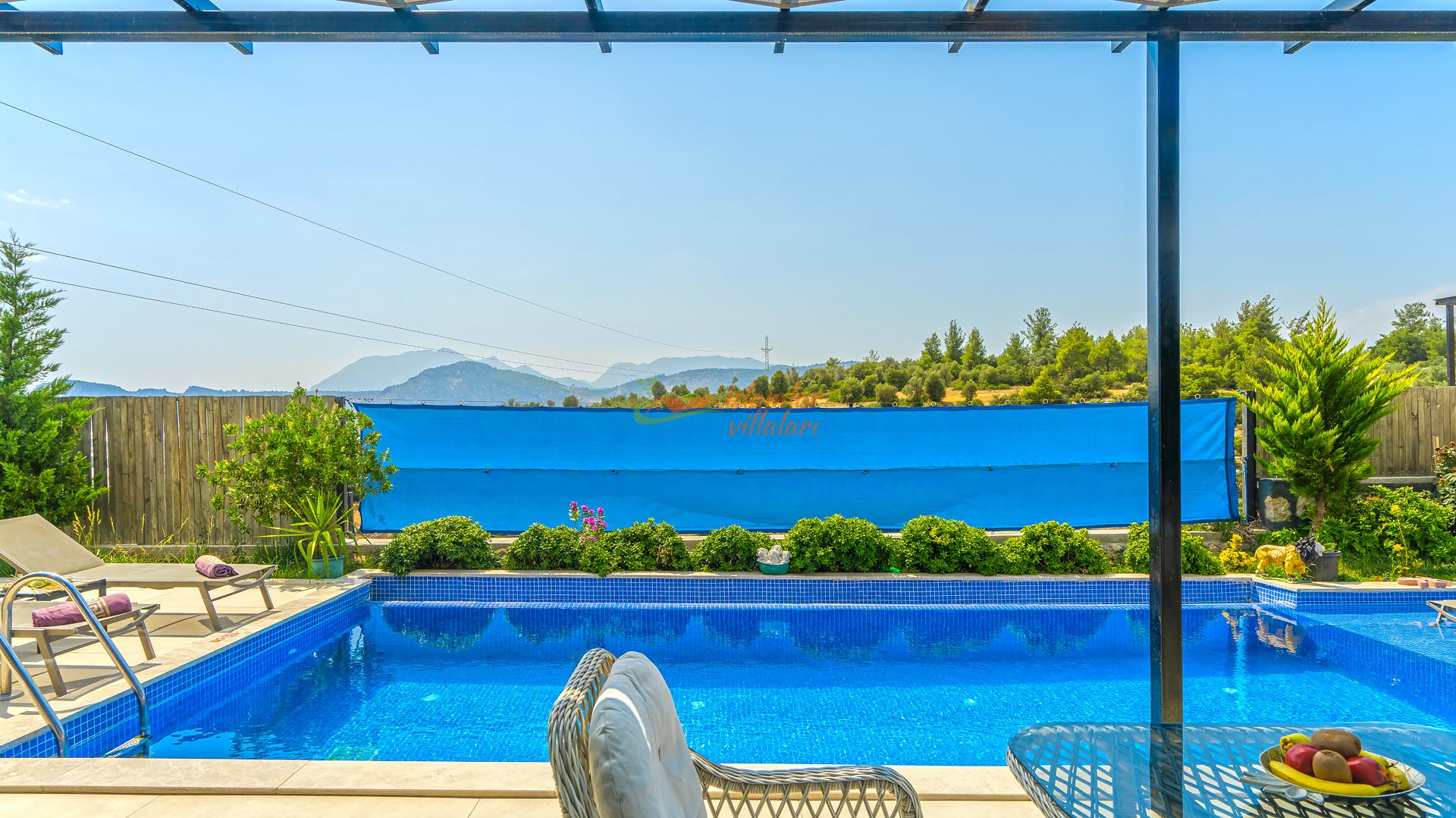 Korunaklı Alanlar: Villamızın havuz terası ve geniş bahçesi vardır, dışarıdan havuzu görünmeyecek şekilde yüksek hassasiyetle çevrelenmiştir. Ailenizle birlikte güven içinde havuzun tadını çıkarabilirsiniz.