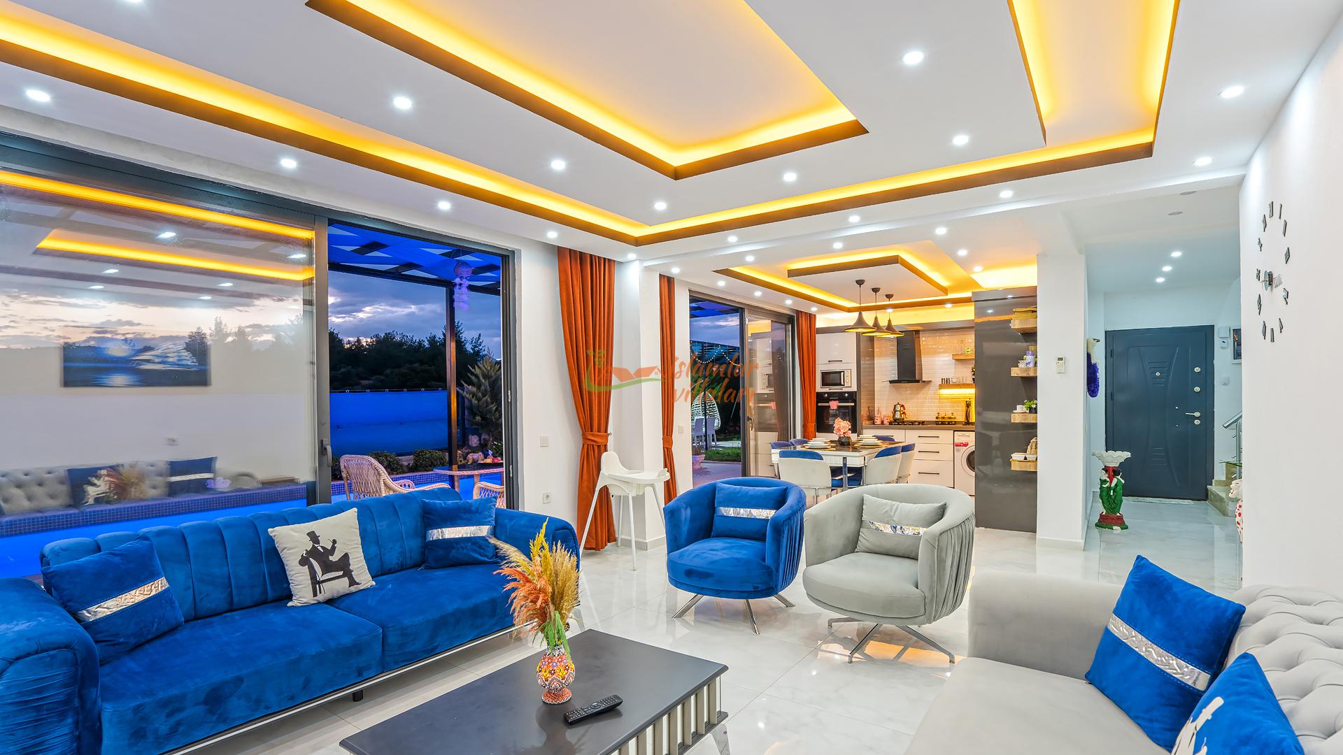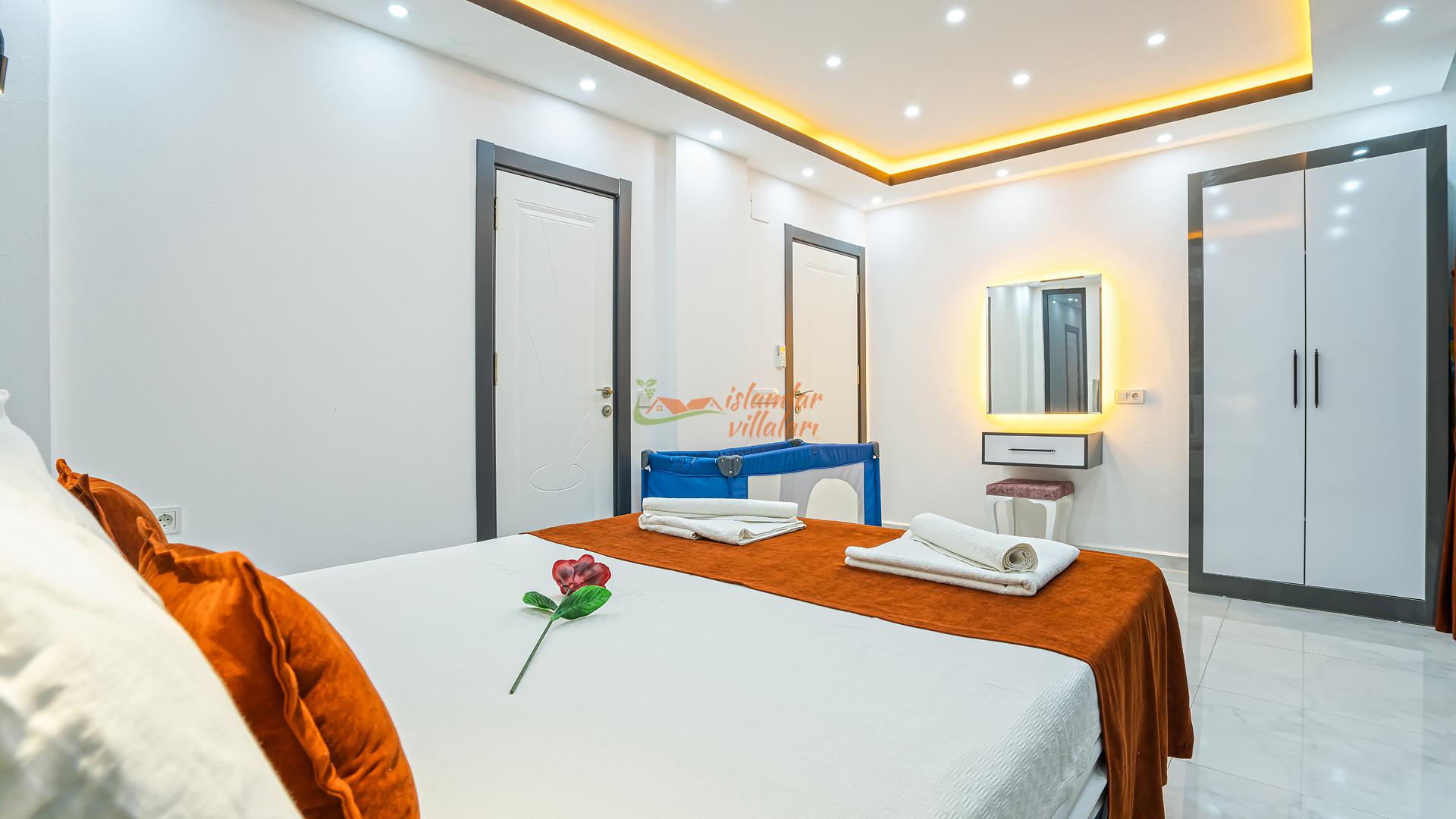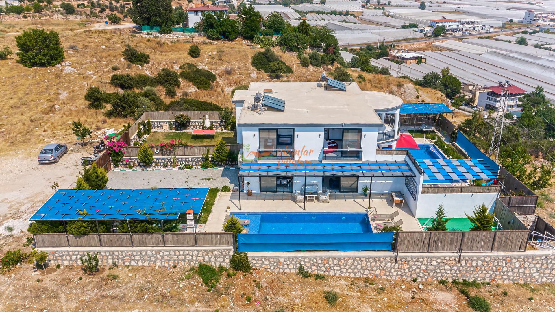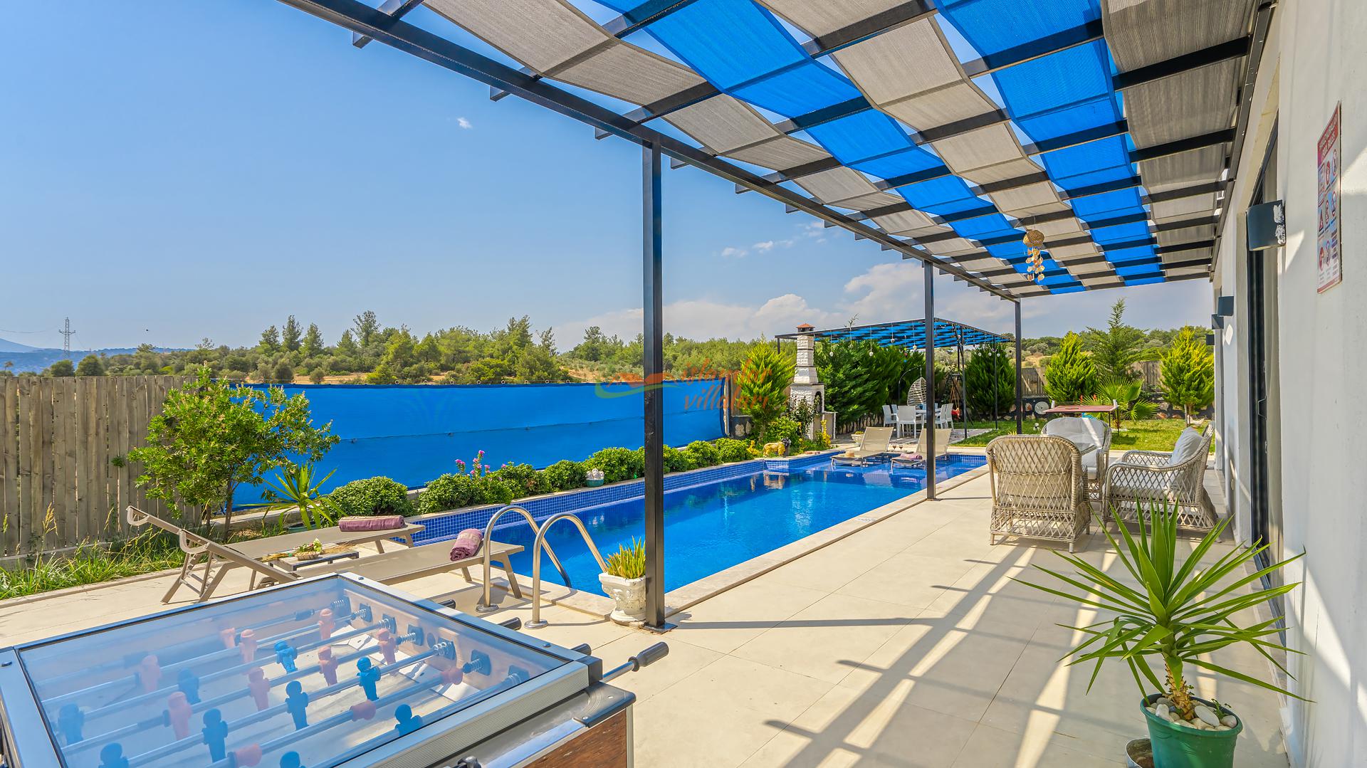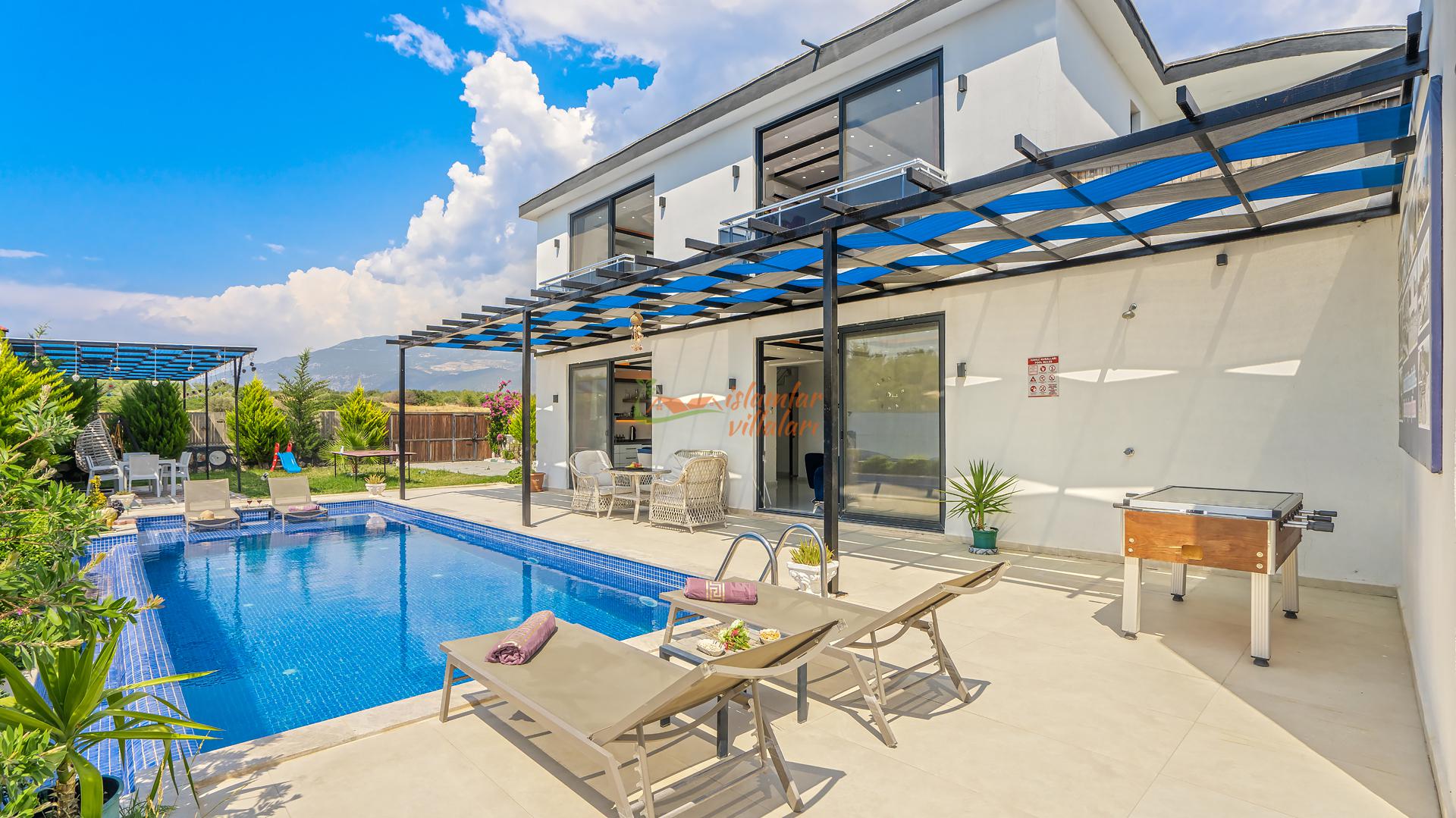 Korunaklı Alanlar: Villamızın havuz terası ve geniş bahçesi vardır, dışarıdan havuzu görünmeyecek şekilde yüksek hassasiyetle çevrelenmiştir. Ailenizle birlikte güven içinde havuzun tadını çıkarabilirsiniz.