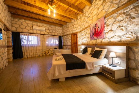 Villa Anahita, Kalkan merkezine yakın bir konum olan Kördere'de bulunan muhteşem deniz manzaralı balayı villalarımızdandır. Deniz manzaralı villalar kategorisinin ilk sıralarında yer alan tatil villamız, tek yatak odalı olup 2 kişilik konaklama kapasitesine sahiptir. Yatak odasında bulunan jakuzisinde bütün yılın yorgunluğunu atarken aynı zamanda manzaranın da tadını çıkarabilirsiniz. Villamızda tatil keyfinizi arttıracak hamam, sauna ve masa tenisi de vardır.