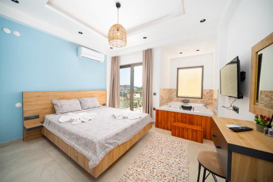 Villa Çağdaş 2, Kaş'ın Çukurbağ Köyü’nde doğa içinde yer alan kiralık villamızdır. 5 kişi kapasiteli, özel havuzlu kiralık villamızda 2 adet yatak odası bulunmaktadır. Doğa manzaralı villamızın ebeveyn yatak odasında olan jakuzisinde oldukça keyifli bir ortam sunmaktadır. Villamız tüm yatak odalarında ve salonunda klima bulunmaktadır. Havuz alanında rahat etmeniz için düşünülmüş şezlonglar ile birlikte oturma alanı da bulunmaktadır.