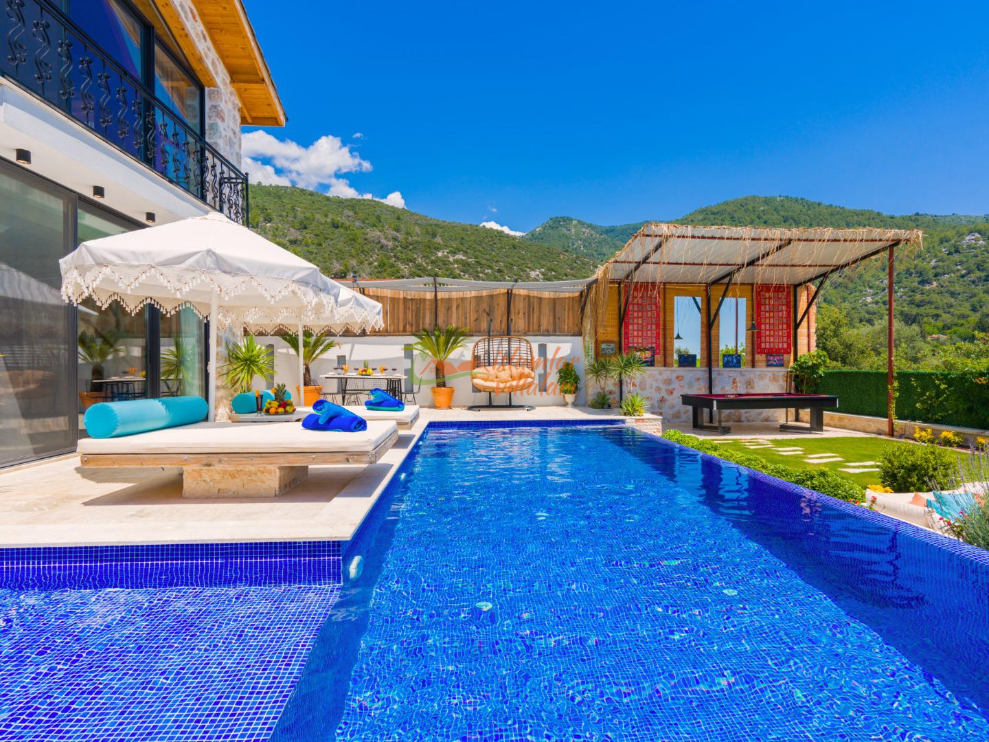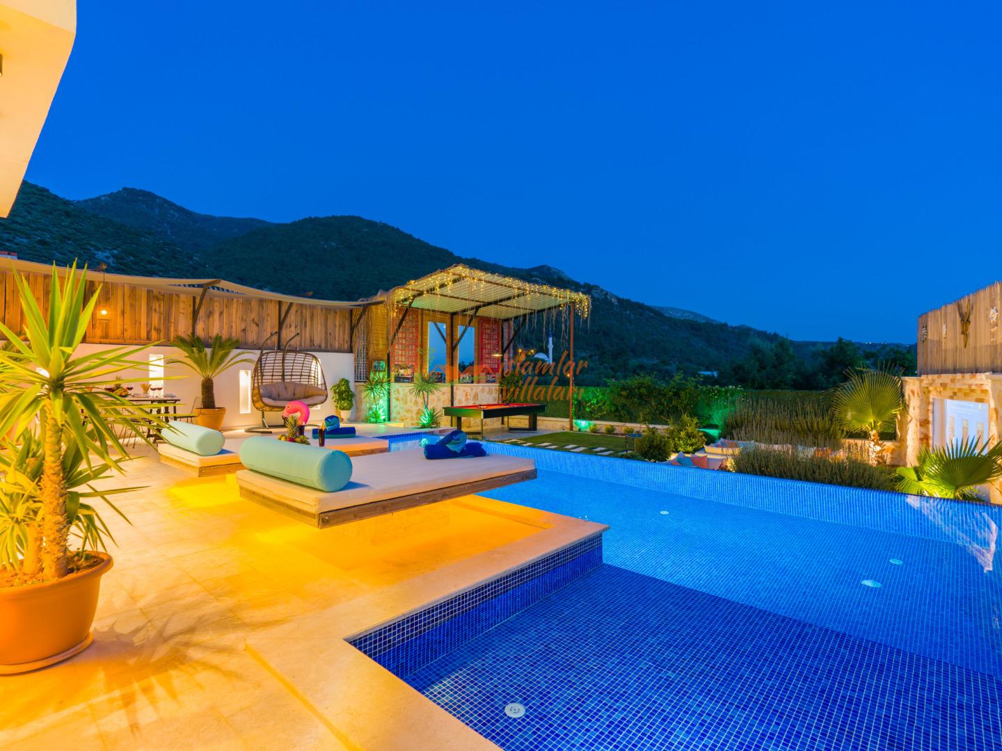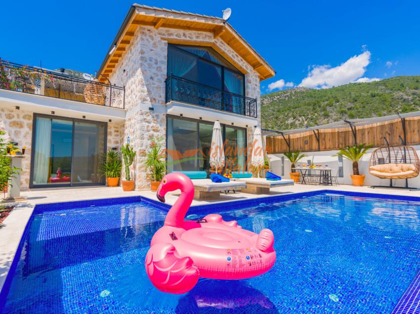 Villa Casa Perla, Kalkan merkeze 15 dakika mesafedeki Çayköy mevkiinde bulunuyor. Kiralık tatil villası hem çiftler hem de çekirdek aileler için oldukça ideal bir seçenektir. Muhafazakar kiralık villa, çevreden görünmediği için muhafazakar ailelerimiz ve balayı çiftlerimiz için çok uygun bir villadır. Villamızın oldukça güzel ve renkli bir dekorasyonu vardır. Havuz terasında bulunan salıncak, bilardo masası ve geniş oturma alanı ile, tatiliniz boyunca keyifli saatler geçirmenizi sağlar.