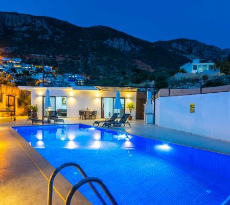 Villa Cengiz Kalkan Kördere mevkiinde konumlanmıştır; deniz manzarasına sahip muhafazakar villamızdır. Çekirdek aileler ve balayı çiftlerinin en çok tercihileri arasında olan deniz manzaralı jakuzili villamızdır. Özel yüzme havuzu ve havuz terasında harika zamanlar geçirebileceğiniz gönlünüzce eğlenip güneşlenebileceğiniz bir ortama sahiptir. Kiralık tatil villamızın etrafının korunaklı olması dolayısıyla havuz ve havuz terası dışarıdan gözükmemektedir. Villa Cengiz, 2 yatak odasına sahiptir ve 4 kişinin konaklayabileceği kapasiteye göre dekore edilmiştir.