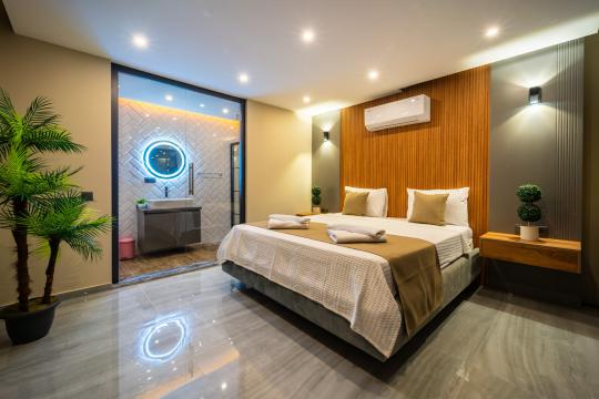Villa Colosseum, şık ve modern bir tasarıma sahip lüks tatil villasıdır. Şıklığı ve konforu bir araya getiren villamız, unutulmaz bir tatil deneyimi sunar. Toplamda 2 yatak odasına sahip olan villamızın bir yatak odasında jakuzi de bulunmaktadır. Villanın konumu, hem mahremiyet arayan muhafazakar aileler hem de balayı çiftleri için oldukça uygundur. Şehrin gürültüsünden uzak, doğayla iç içe bir atmosferde bütün bir yılın yorgunluğunu geride bırakmak isteyen misafirlerimiz için Villa Colosseum, huzur ve keyifle dolu bir tatil için kapılarını sonuna kadar açmaktadır.