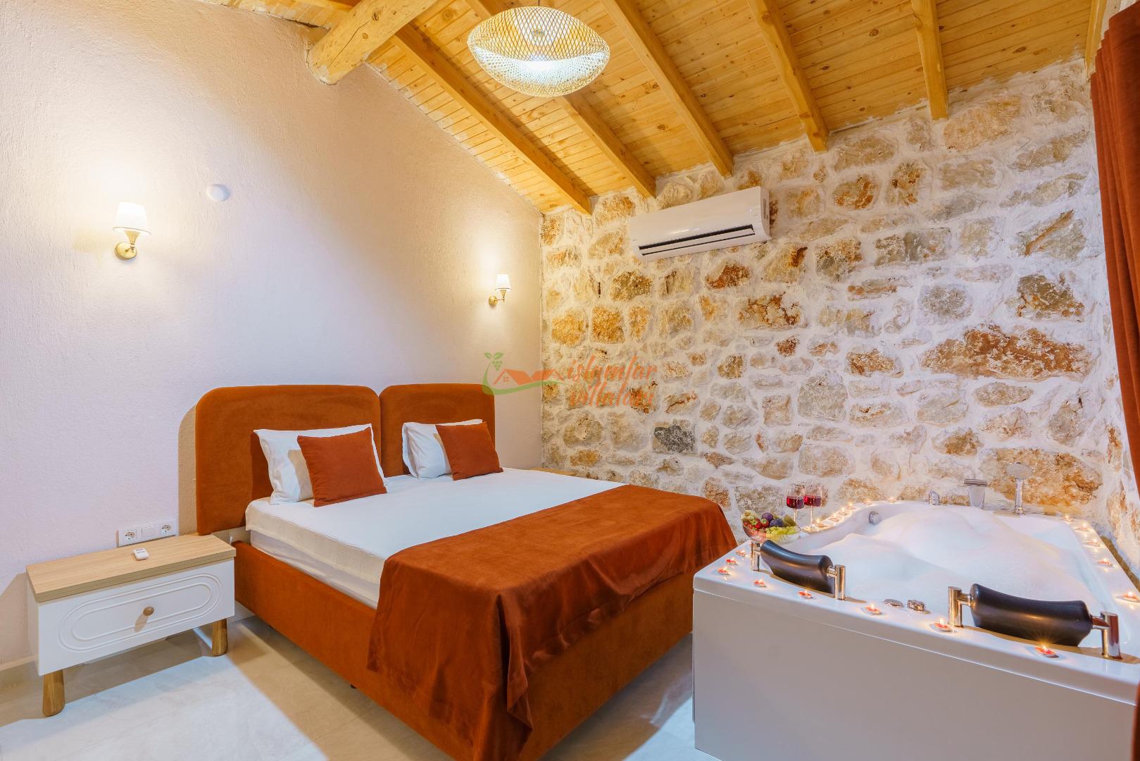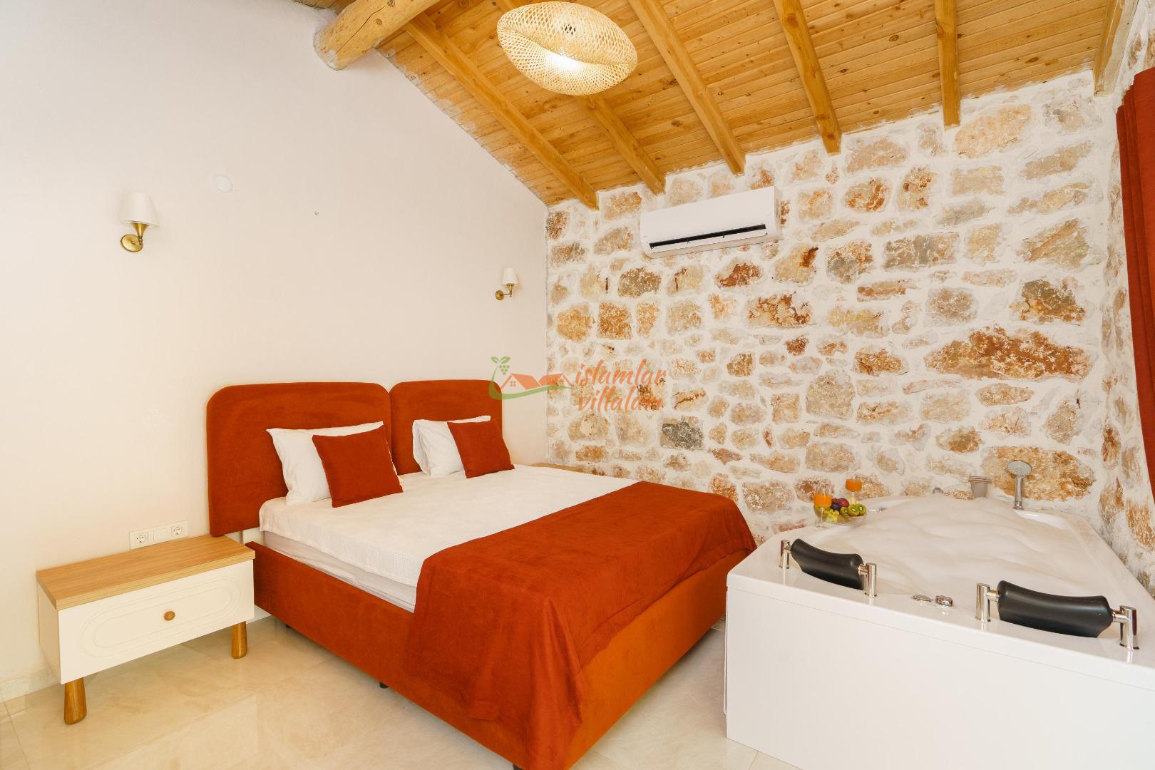Villa Deniz Yıldızı 2, Kalkan Patara'da yer alan balayı çiftleri ve muhafazakar aileler için de son derece uygun kiralık tatil villamızdır. Villamızda 2 yatak odası vardır ve 4 kişiye kadar konaklama yapılabilir. Havuzun ve terasın etrafı korunaklı olması sayesinde gözlerden uzak tatil yapmak isteyen çiftlerin ya da muhafazakar ailelerin oldukça sık tercih ettiği bir villadır. Büyük yatak odasında oldukça güzel bir jakuzi bulunur. Jakuzili villamız balayı tatili için de çok idealdir. Villamızın geniş yeşil bahçesi ve bu bahçede keyifli zaman geçirebileceğiniz masa tenisi de yer almaktadır. Aynı zamanda villamızda minik misafirliermiz için oyun alanıda yer almaktadır.