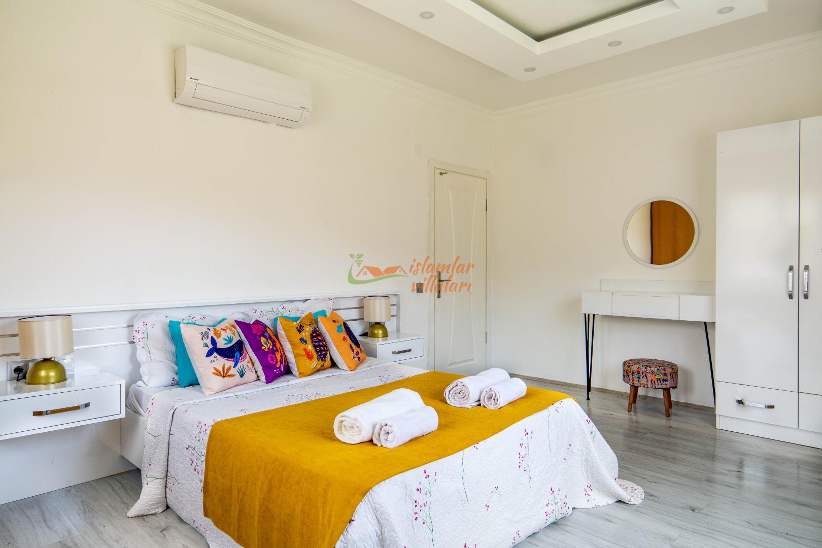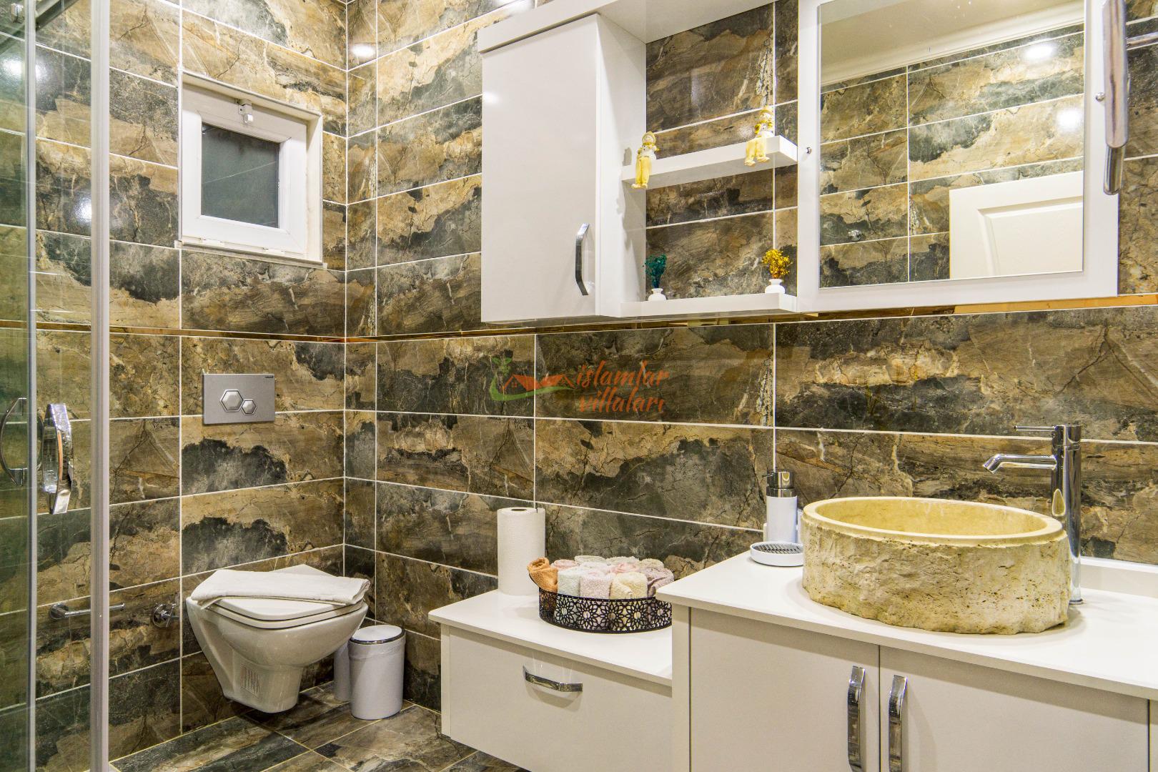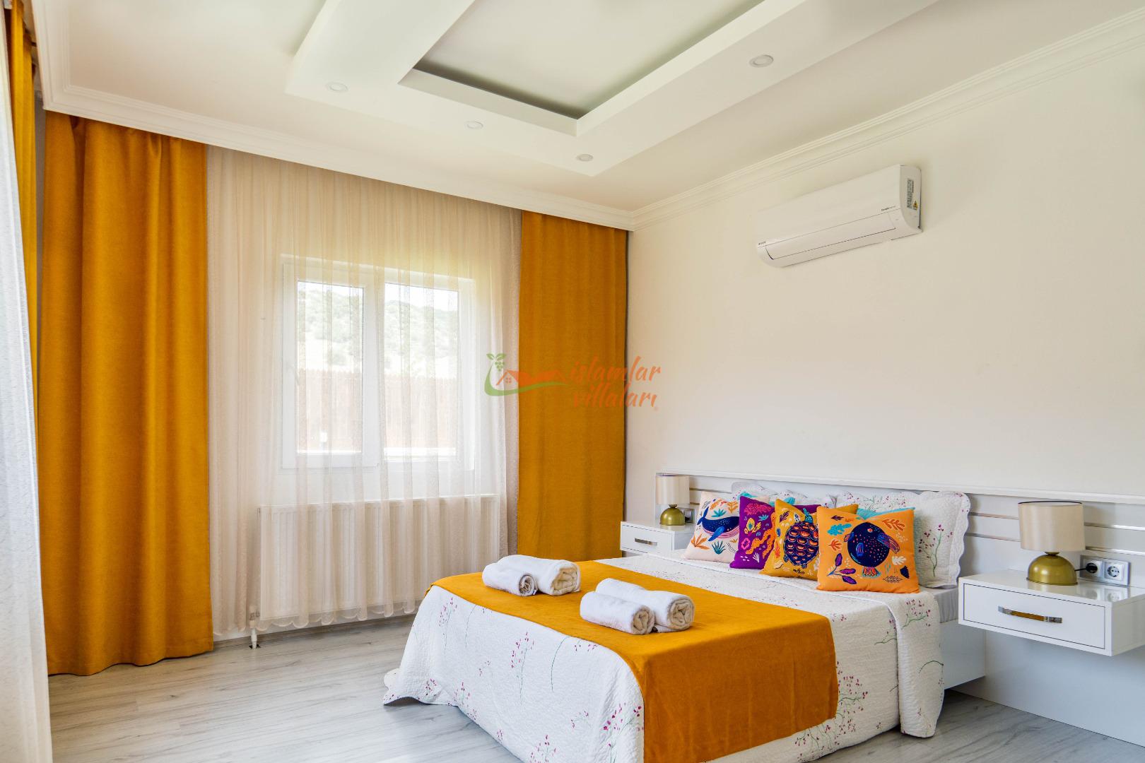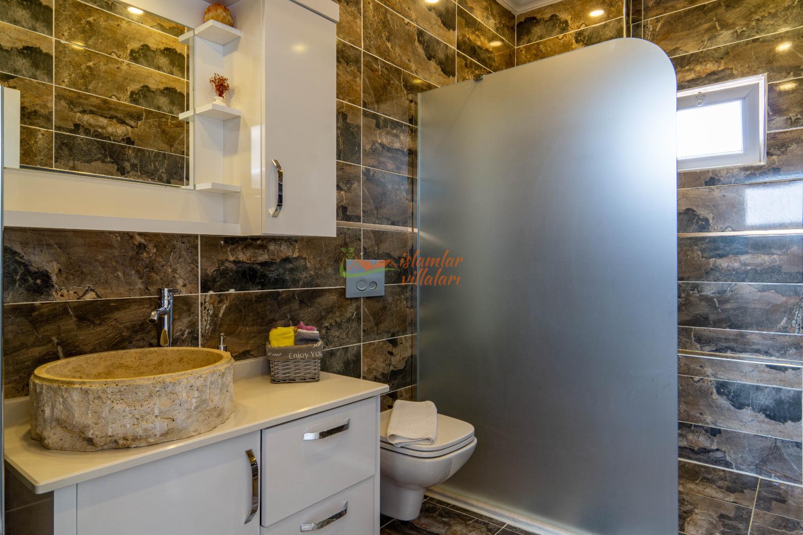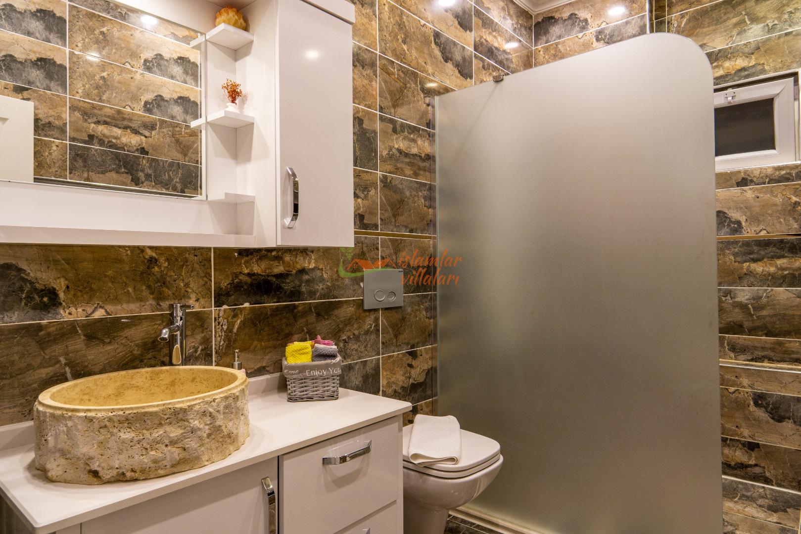 Not: Villanın sadece bir yatak odasının içerisinde banyo tuvalet bulunmaktadır, diğer iki odanın içerisinde değil, ortak kullanım olarak oda dışında banyo tuvalet yer almaktadır.