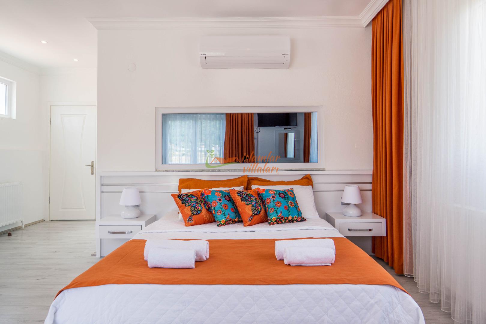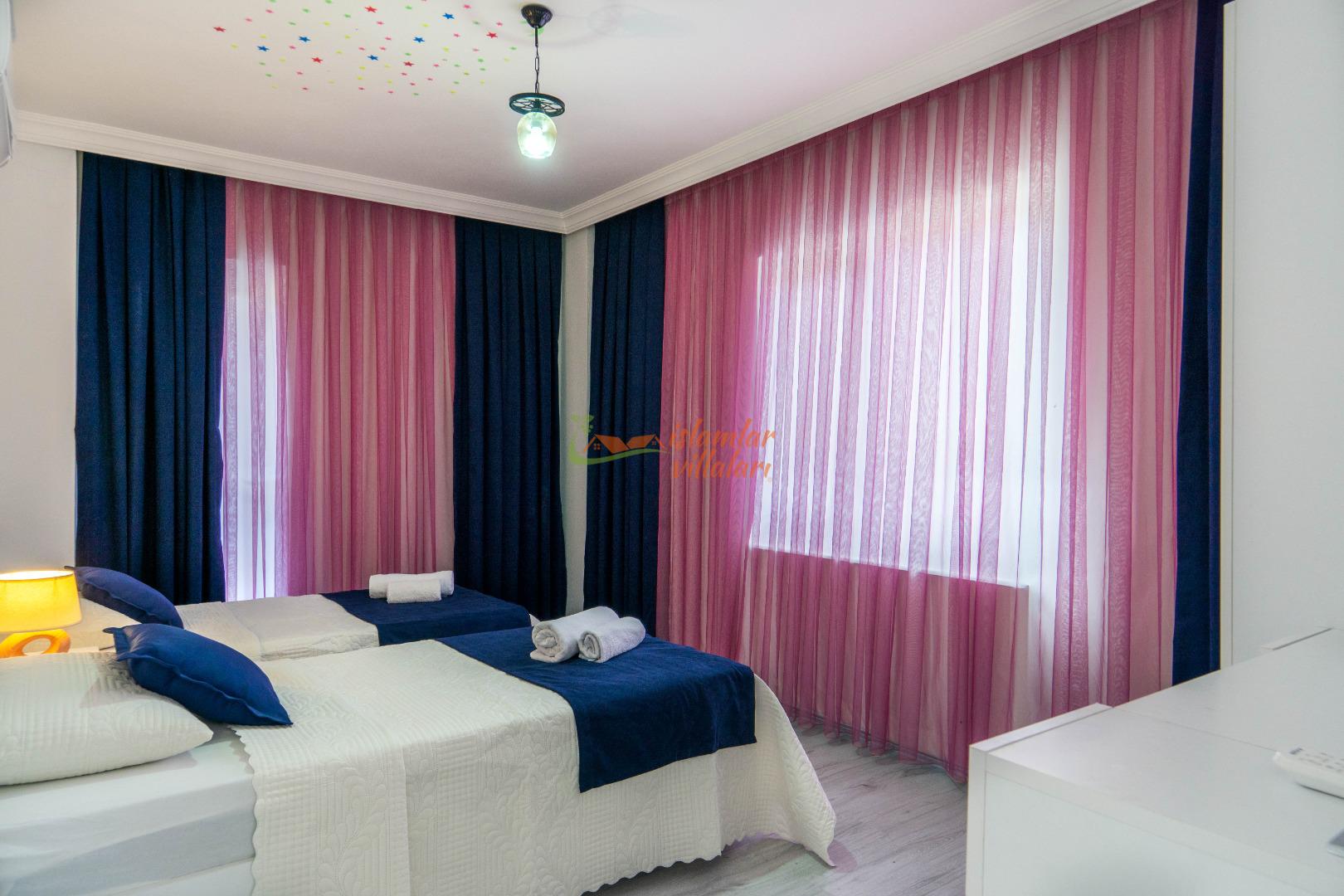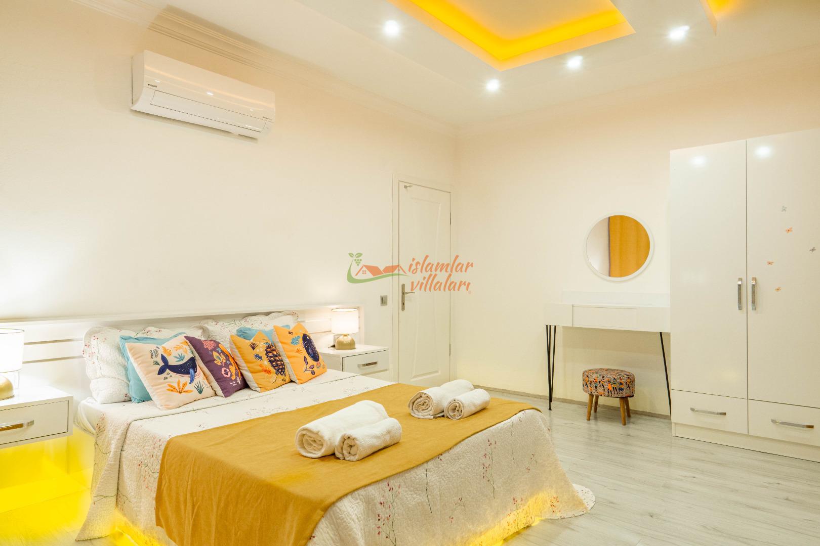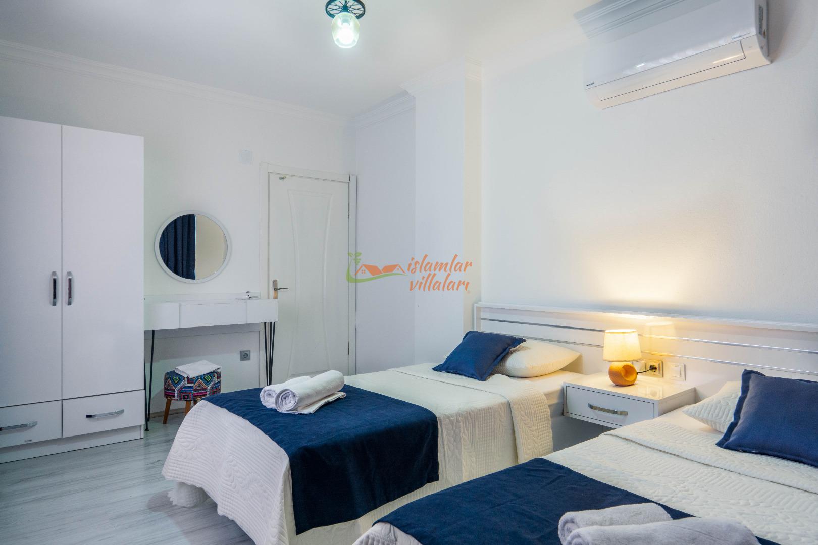 Not: Villanın sadece bir yatak odasının içerisinde banyo tuvalet bulunmaktadır, diğer iki odanın içerisinde değil, ortak kullanım olarak oda dışında banyo tuvalet yer almaktadır.