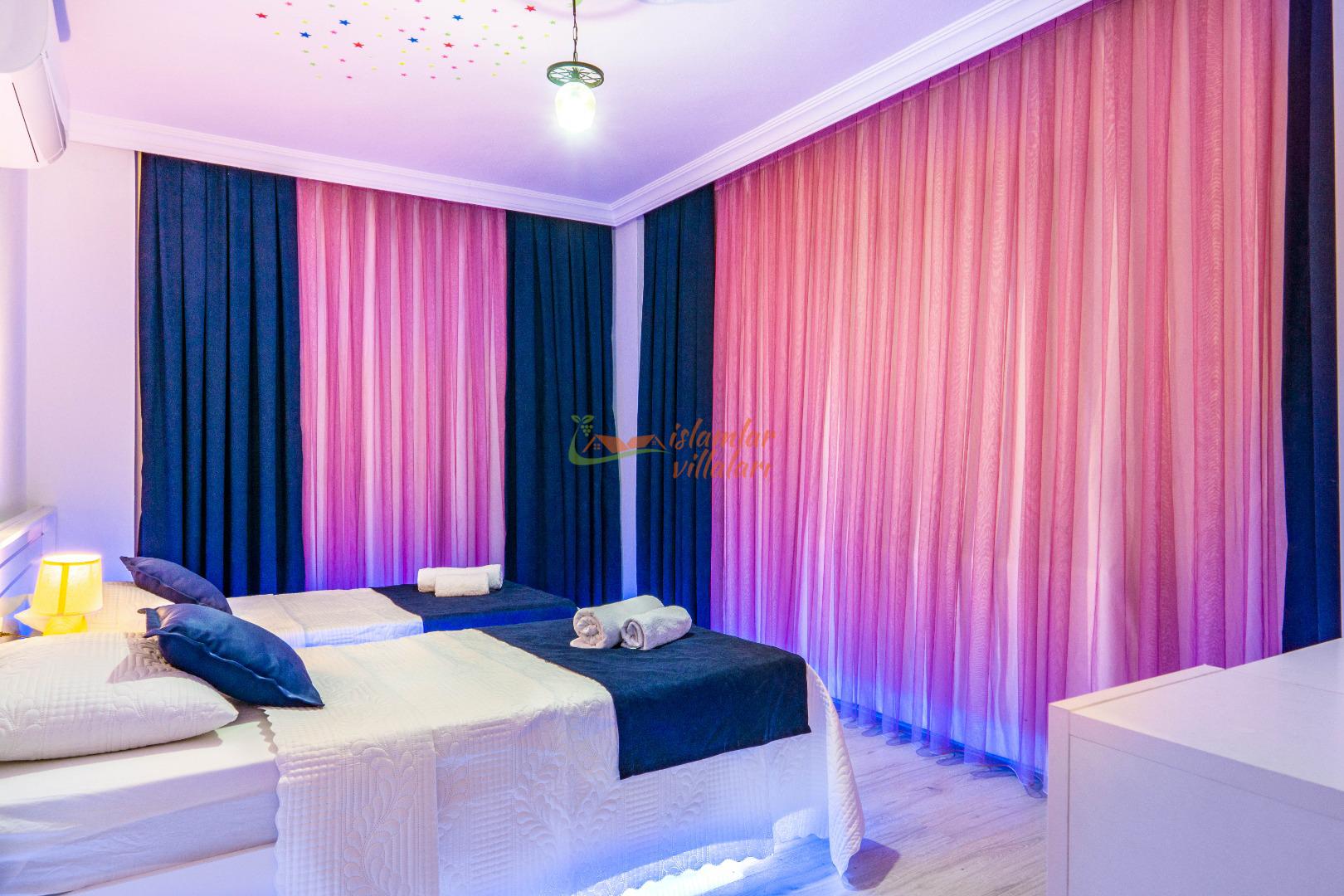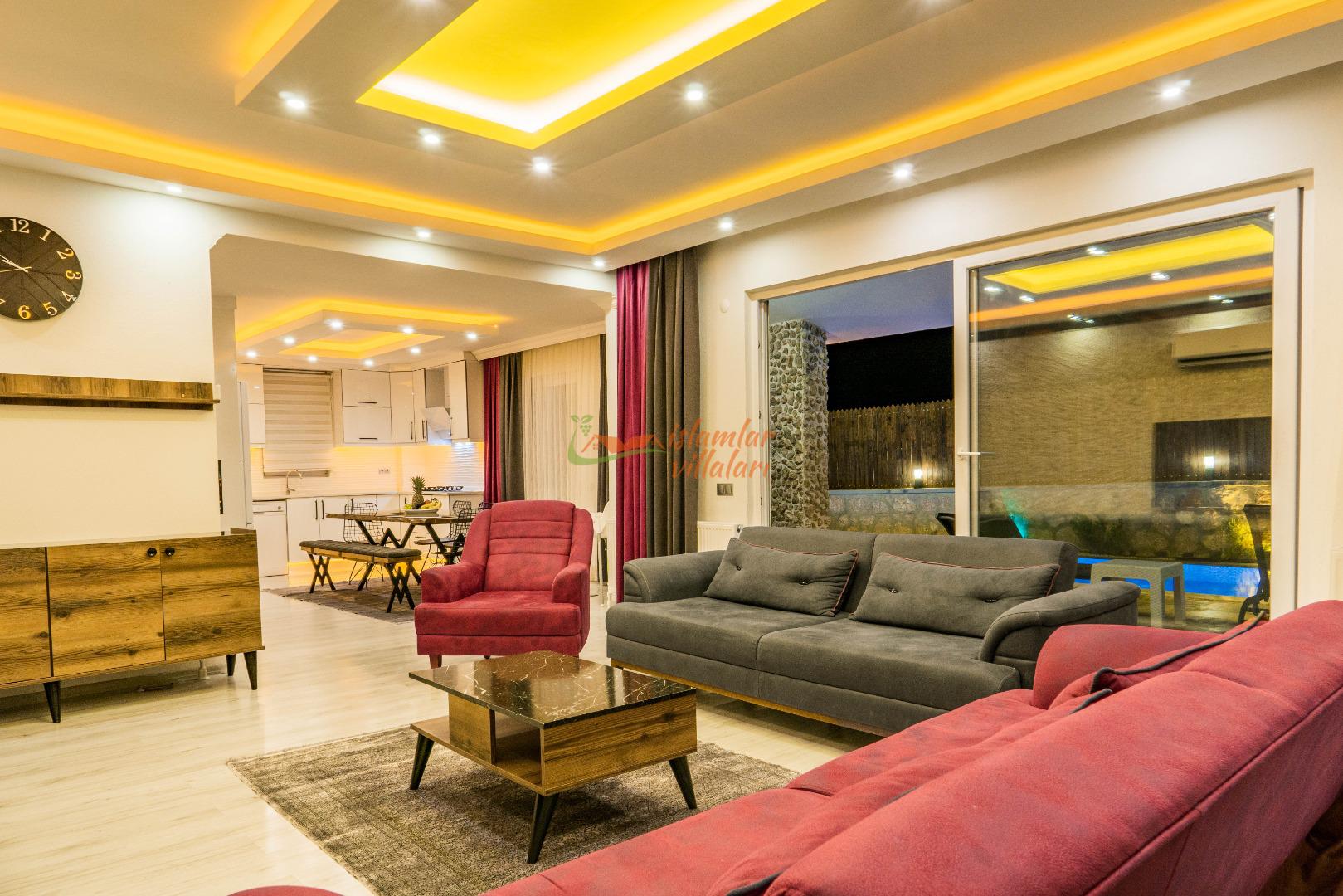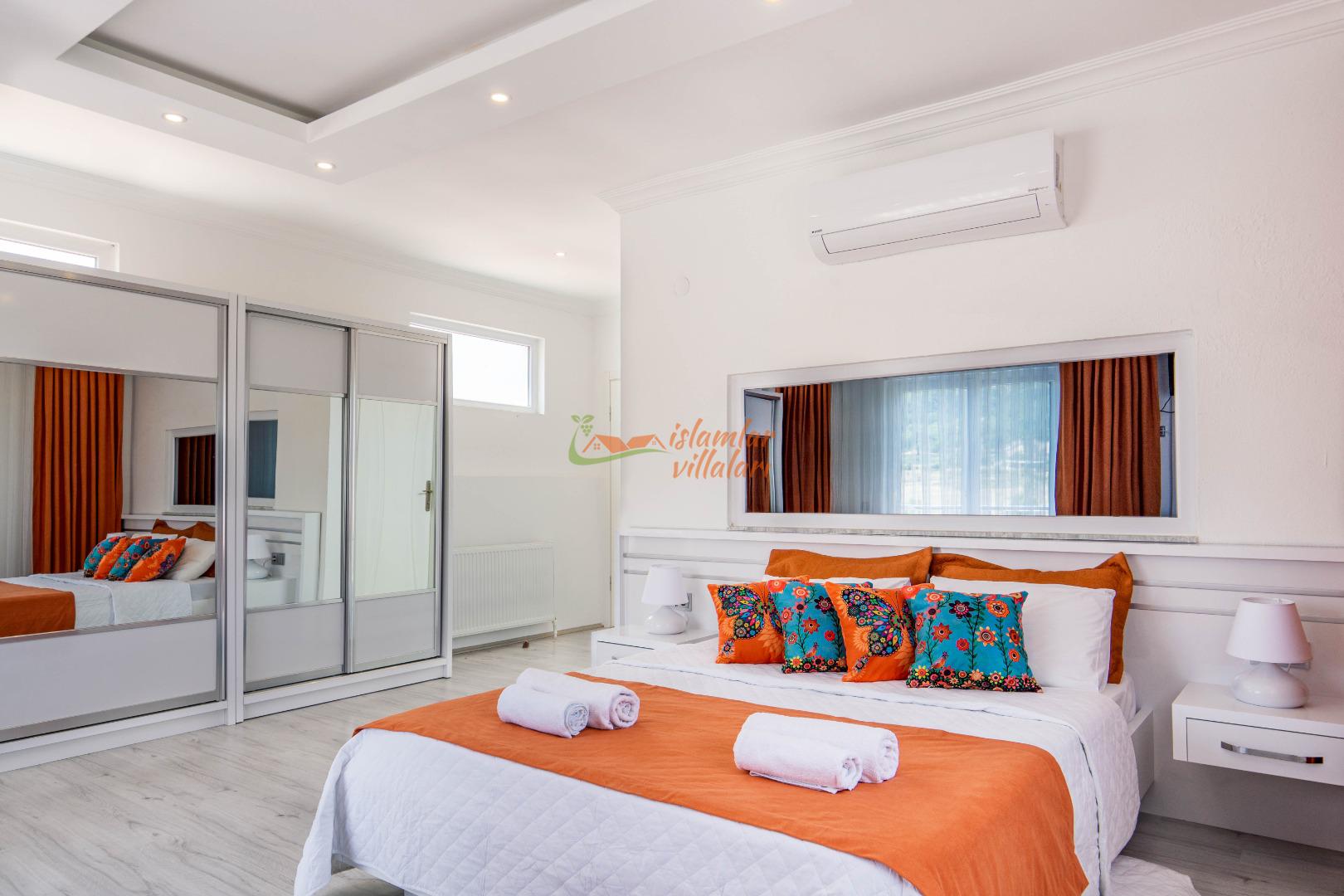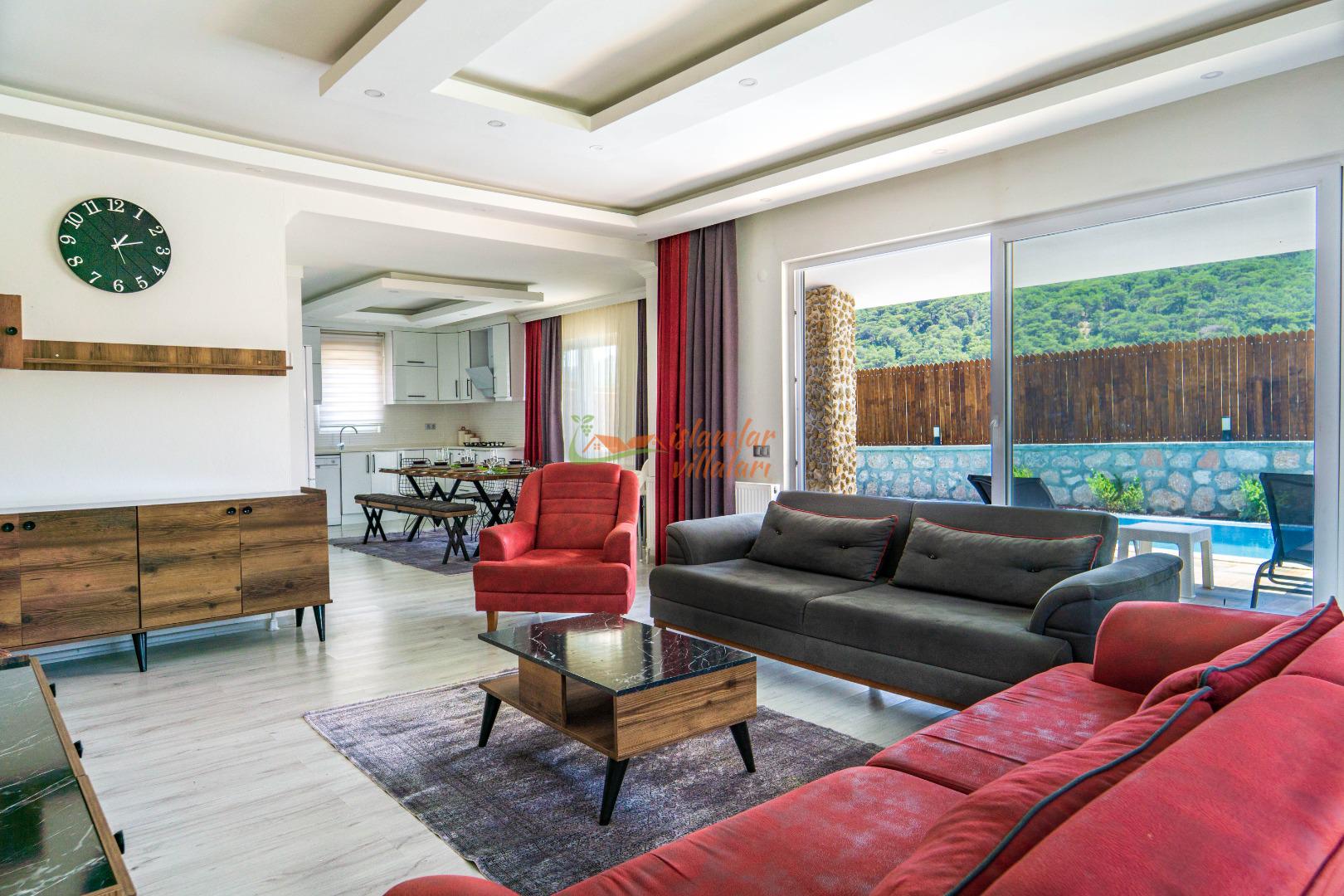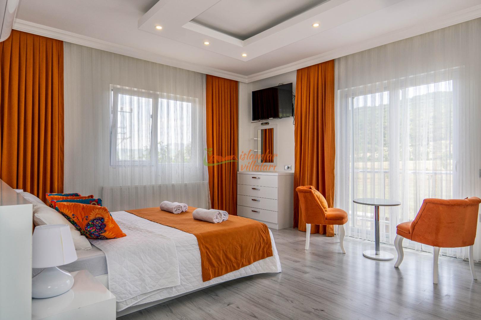 Not: Villanın sadece bir yatak odasının içerisinde banyo tuvalet bulunmaktadır, diğer iki odanın içerisinde değil, ortak kullanım olarak oda dışında banyo tuvalet yer almaktadır.