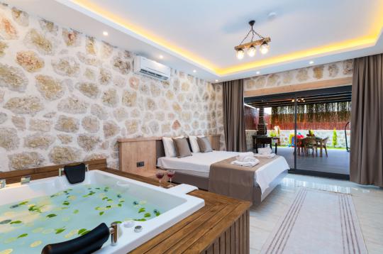 Villa Elysia, Kalkan Çavdır mevkiinde yer alan muhafazakar villamızdır. Modern mimarisi ile dikkat çeken villamız 2 yatak odası ile 4 kişi konaklama kapasitesine sahiptir. Yatak odasında jakuzi bulunan villamızın havuzu da korunaklıdır, bu yönüyle gözlerden uzak olmak isteyen muhafazakar aileler ve balayı çiftleri için oldukça güzel bir seçenektir. Korunaklı havuzu, geniş bahçesi, bahçe salıncağı ve yaz aylarının vazgeçilmezi barbeküsüyle villamız gözlerden uzak ve huzurlu bir tatil geçirmek isteyen misafirlerini bekliyor.