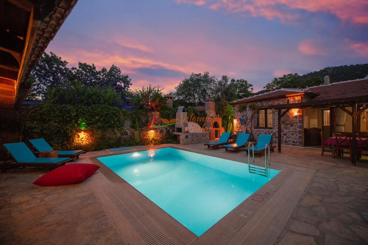 Villa Gül Kayaköy, Fethiye Kayaköy'de bulunan, 2 yatak odası ile 5 kişilik konaklama kapasitesi sunan villamız hem çiftler hem de çekirdek aileler için oldukça uygun. Havuz terası korunaklı olan villamız gözlerden uzak tatil yapmak isteyen misafirlerimiz için idealdir.