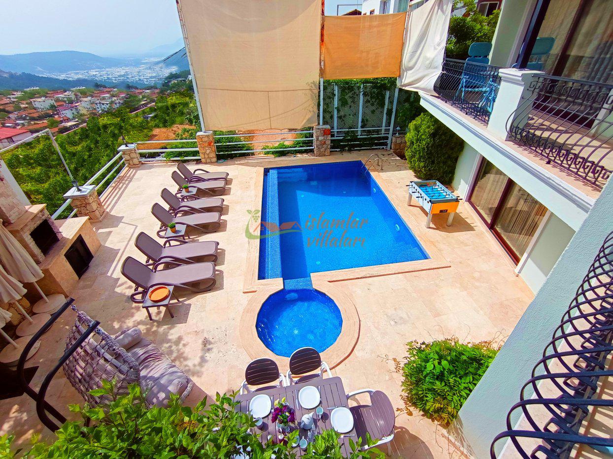 Villa Hazal, Kalkan'ın merkezine yakın bir konum olan Akbel Mevkii'nde yer alıyor. Villamız korunaklı olup, Patara ve Kalkan manzarasına sahiptir. Villamızda güzel tatil geçirmeniz için tüm detaylar düşünülmüştür. 5 yatak odalı olan Villa Hazal'da 10 kişiye kadar konaklama yapılabilir. Jakuzili odası ile aile ve arkadaş grupları tarafından sıklıkla tercih edilmektedir.
