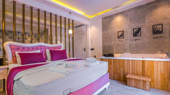 Villa Hüma Üzümlü, balayı çiftlerine ve çekirdek ailelere göre tasarlanmış, doğada yer alan muhteşem bir tatil villasıdır. Bu özel villa, misafirlerimize huzur dolu bir tatil yaşatma amacıyla hazırlanmıştır. Balayı çiftleri için de ayrıca hazırlanan villamız 4 kişilik konaklama kapasitesine sahiptir. 2 yatak odası ve 2 banyosuyla, misafirlerine geniş ve konforlu bir yaşam alanı sunar. Modern ve şık bir dekorasyonla donatılmış olan bu villa, tatiliniz boyunca evinizin rahatlığını aratmayacak.Villamız, doğa içerisinde keyifli bir tatili ve konforu bir arada yaşamak isteyenler için ideal bir seçimdir. Hem balayı çiftleri için romantik bir atmosfer, hem de aileler için huzurlu bir tatil fırsatı sunan bu villa, Üzümlü'nün eşsiz güzellikleriyle sizi bekliyor.