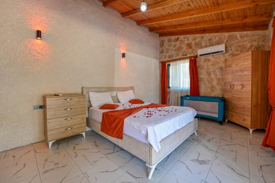 Villa İsabet 2, Kaş Ahatlı mevkiinde yer alan muhafazakar villamızdır. Modern mimarisi ile dikkat çeken villamız 2 yatak odası ile 4 kişi konaklama kapasitesine sahiptir. Dış mekan jakuzisi bulunan villamızın havuzu da korunaklıdır, bu yönüyle gözlerden uzak olmak isteyen muhafazakar aileler ve balayı çiftleri için oldukça güzel bir seçenektir. Korunaklı havuzu, keyifli bahçe salıncağı ve yaz aylarının vazgeçilmezi barbeküsüyle villamız gözlerden uzak ve huzurlu bir tatil geçirmek isteyen misafirlerini bekliyor.