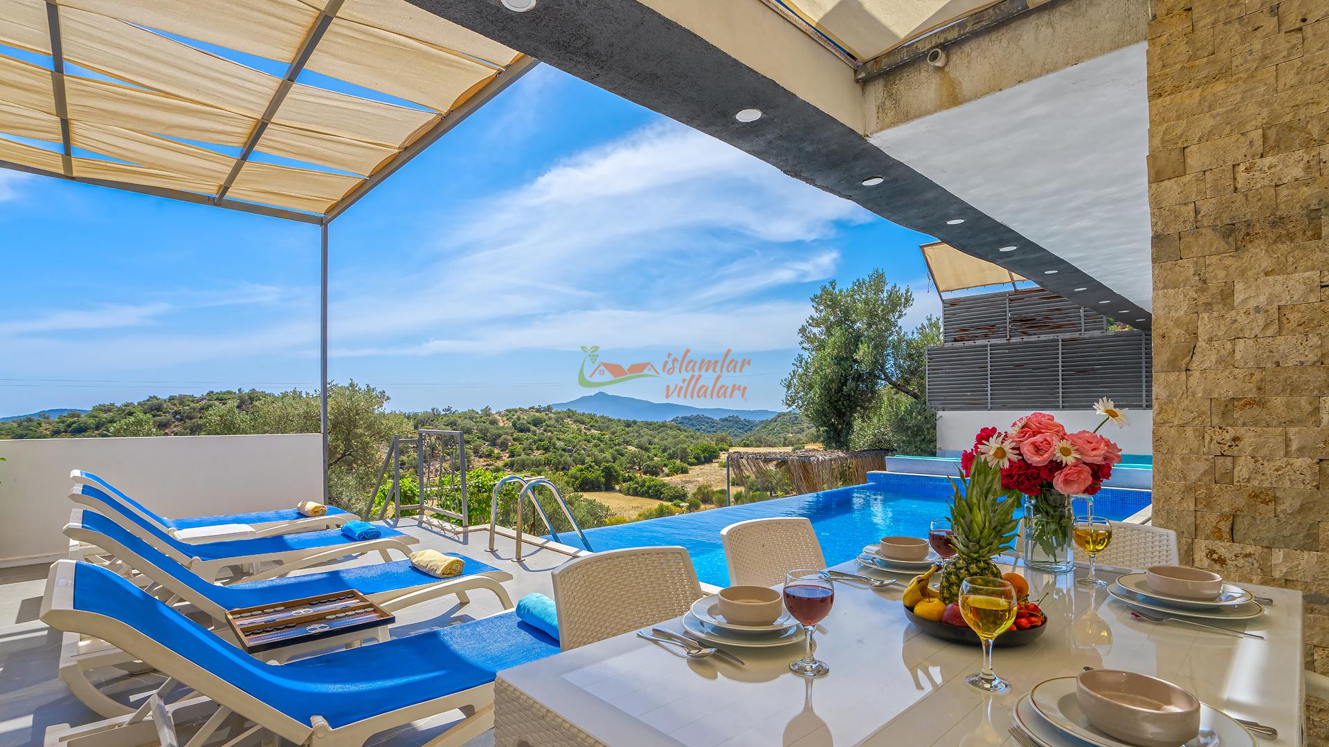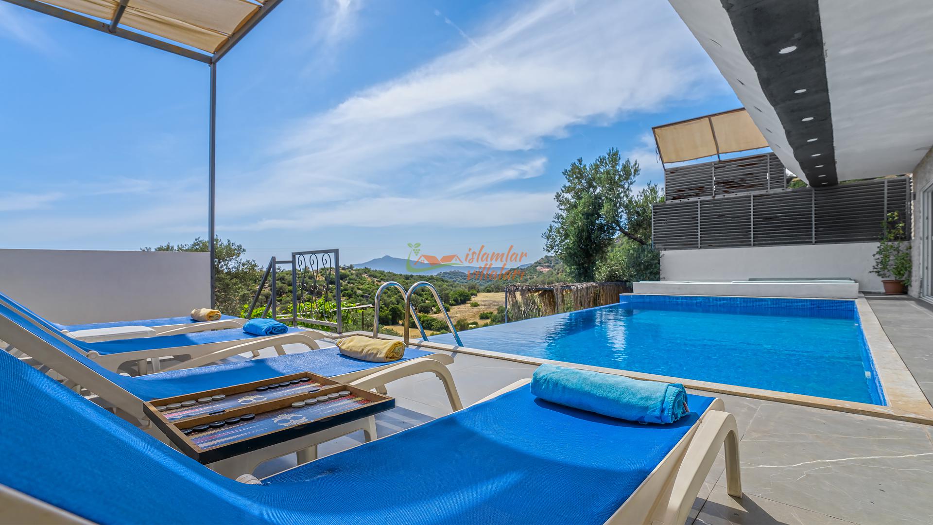 Villamızda bulunan özel havuz, tam donanımlı mutfak ve tatil keyfinizi tamamlayıcı detaylar kalabalıktan uzak izole bir tatil için ihtiyacınız olan her şeyi bir arada sunarak keyifli ve güvenli bir tatil imkanı sunuyor.