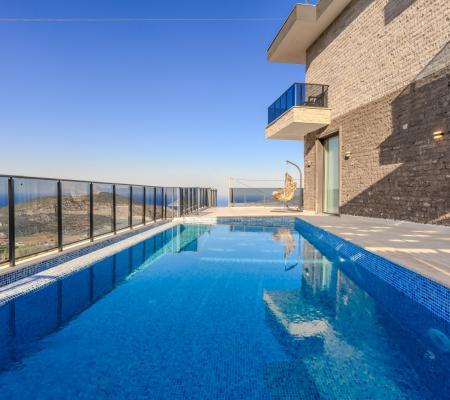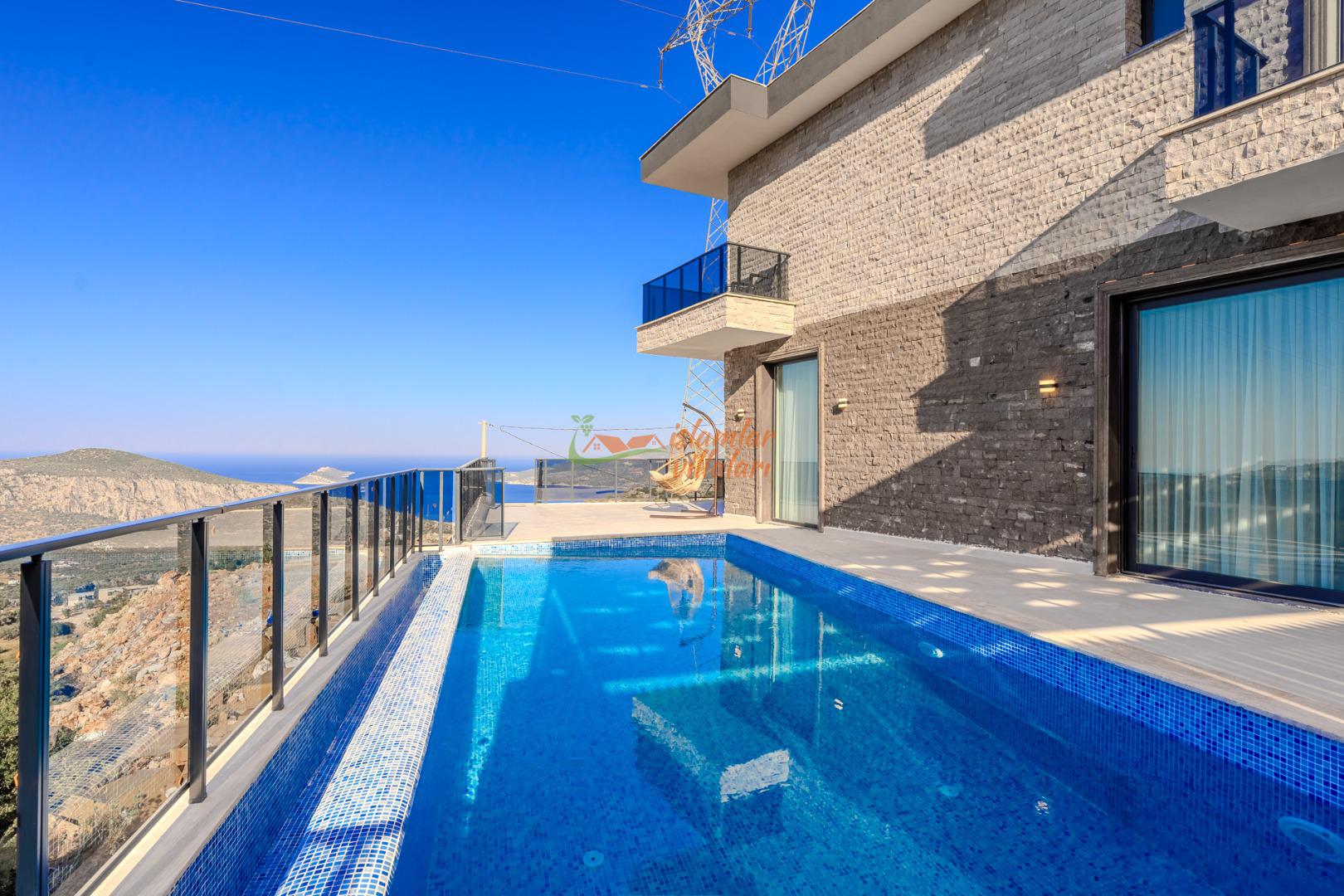 Eşsiz Deniz Manzarası: Villadan Kalkan'nın manzarasını izleyebilir, gün batımını havuz terasından takip edebilirsiniz.