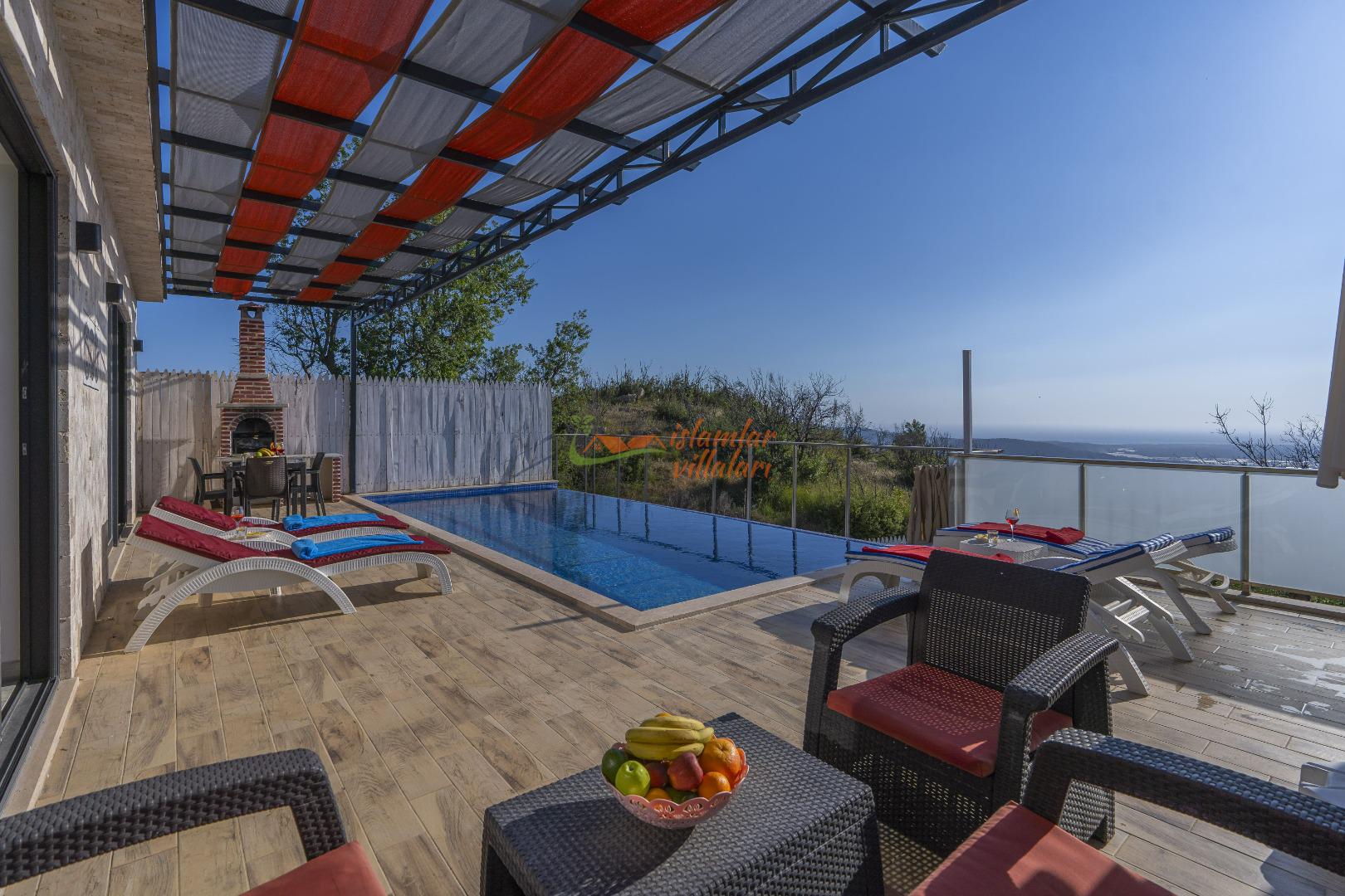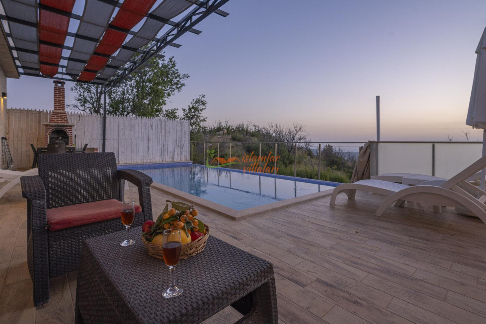 Isıtmalı Dış Havuz ve Mahremiyet: Havuz terası korunaklıdır. Isıtma özelliği sayesinde bahar aylarında bile açık havada havuz keyfi yapabilir, muhafazakar yapımızla huzurla dinlenebilirsiniz.
