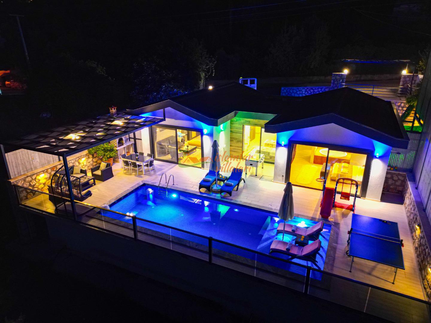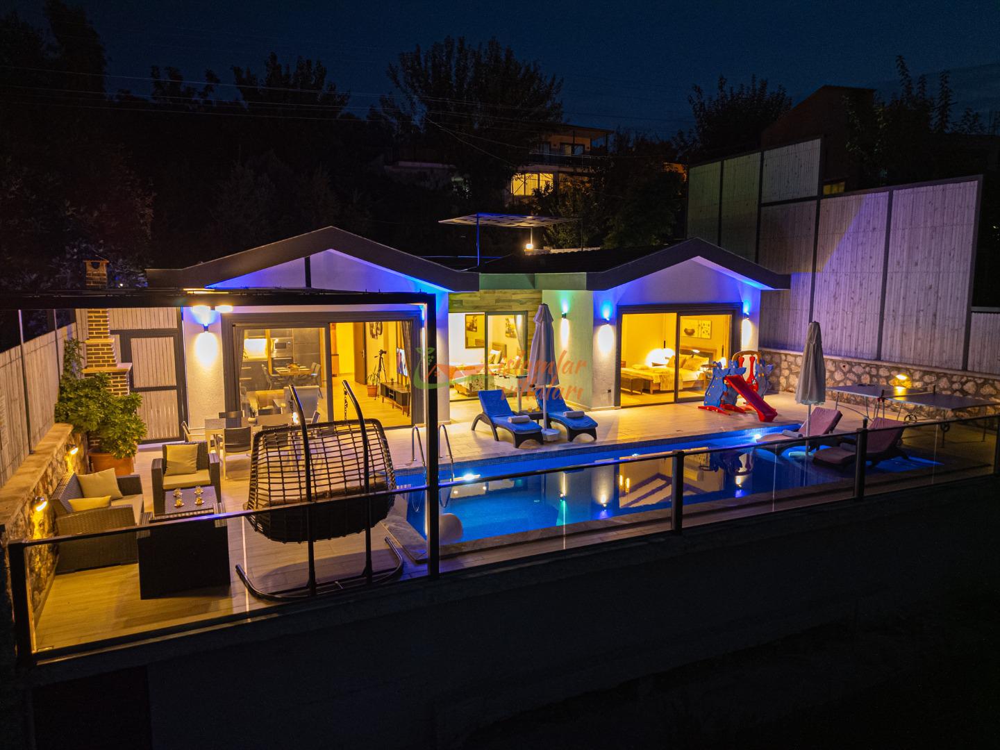 Kalkan’ın doğasıyla büyüleyen Üzümlü Köyü’nde konumlanan Villa Nokta, huzur, lüks ve eğlenceyi bir arada arayan misafirlerimiz için kapılarını aralıyor. 2 yatak odalı ve 4 kişi konaklama kapasiteli villamız, modern tasarımı ve sunduğu zengin sosyal imkanlarla hem çekirdek aileler hem de balayı çiftleri için kusursuz bir tatil rotasıdır.