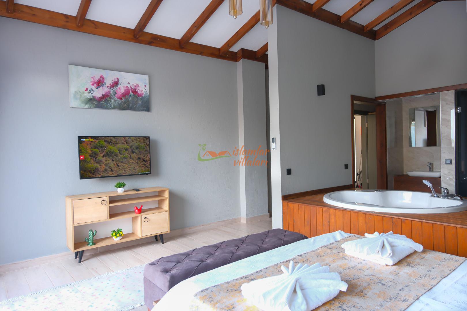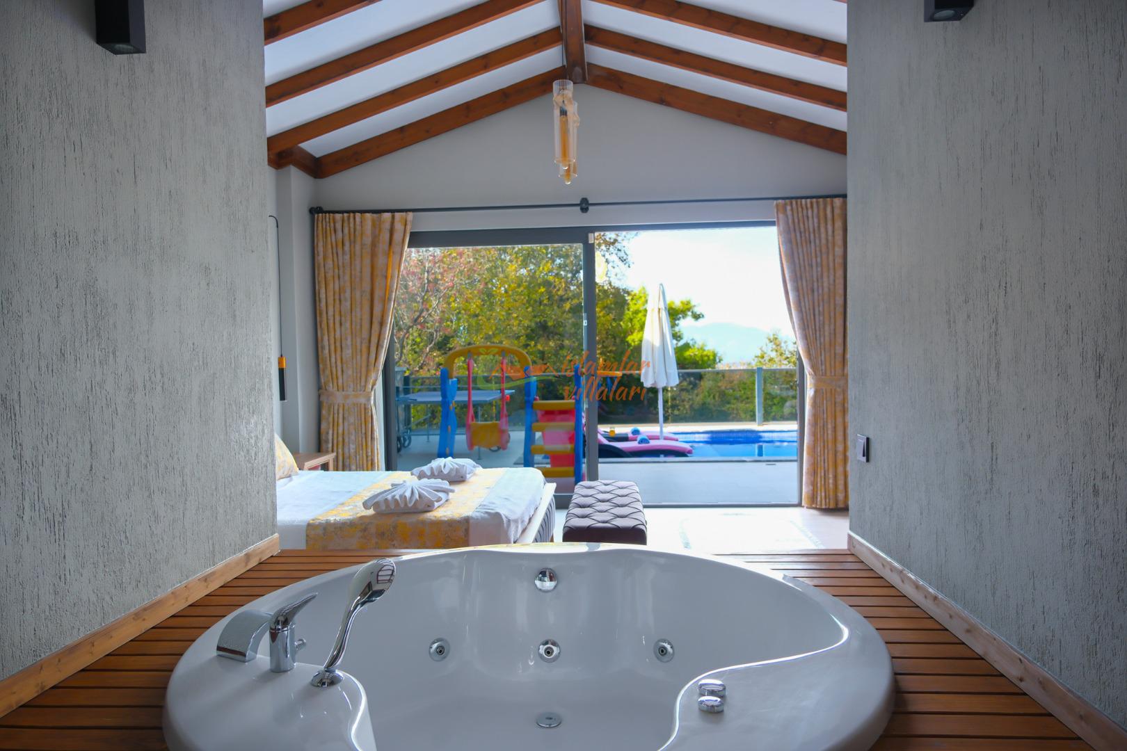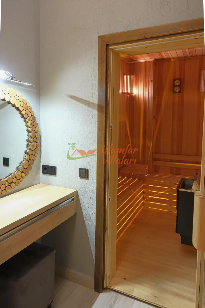 Kendi Özel Spa Alanınız: Villamızın bünyesinde yer alan Türk hamamı, sauna ve ebeveyn yatak odasındaki konforlu jakuzi, yılın tüm stresini atmanızı sağlayacak bir arınma deneyimi sunar.