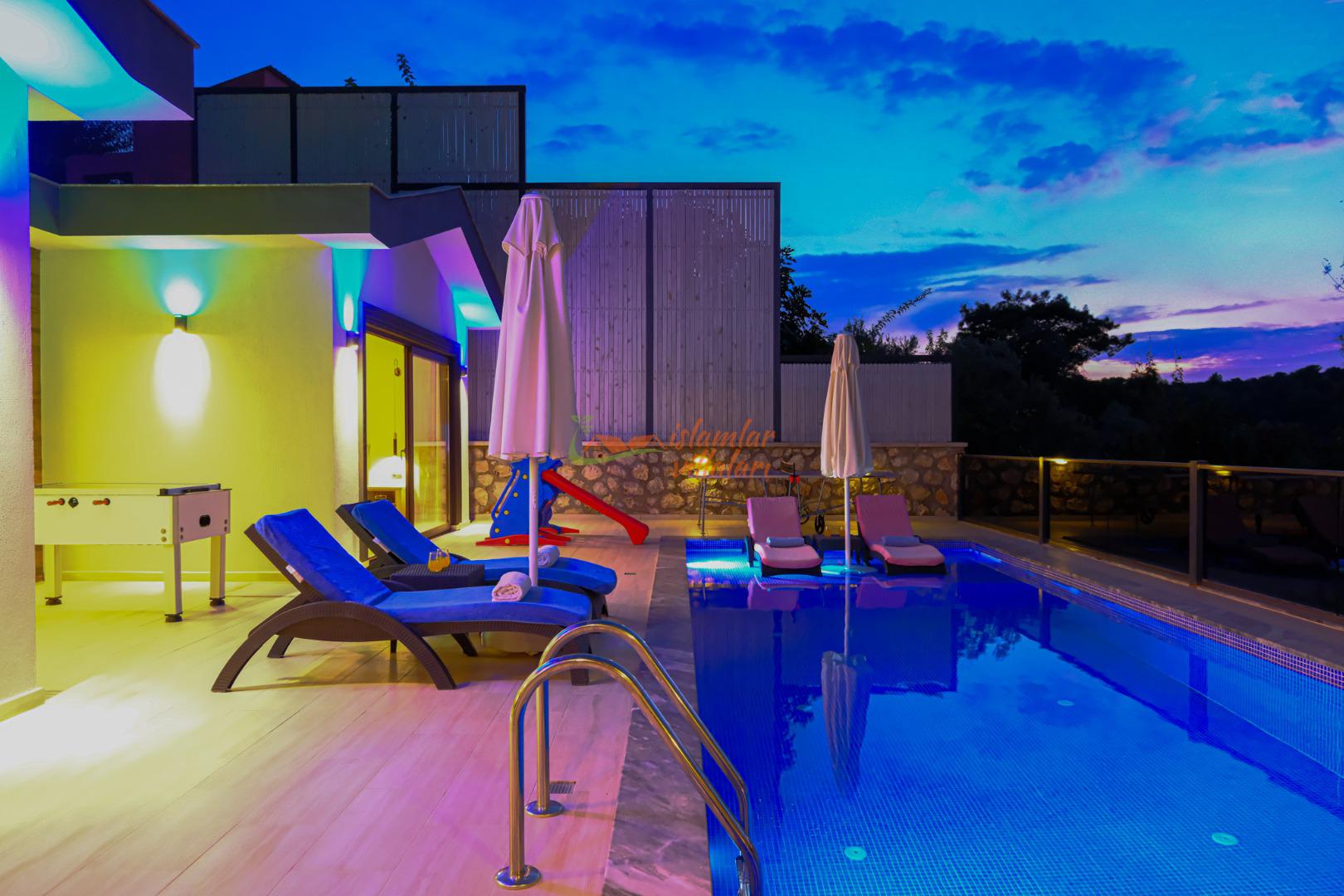Tamamen Size Özel (Muhafazakar): Havuz terası ve bahçe alanı dışarıdan görünmeyecek şekilde korunaklı hale getirilmiştir. Gözlerden uzak, özgürce tatil yapmanın tadını çıkarabilirsiniz.