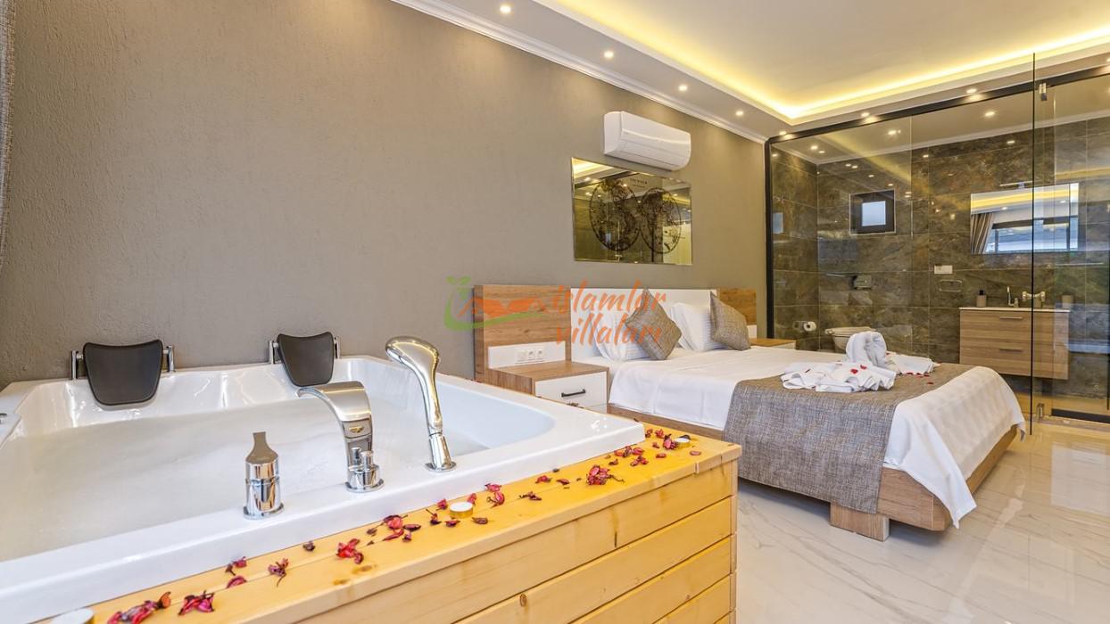 Kişisel Spa Merkezi: Villa içerisinde yer alan sauna ve Türk hamamı ile tazelenin; yatak odasındaki jakuzi ile günün yorgunluğunu atın.