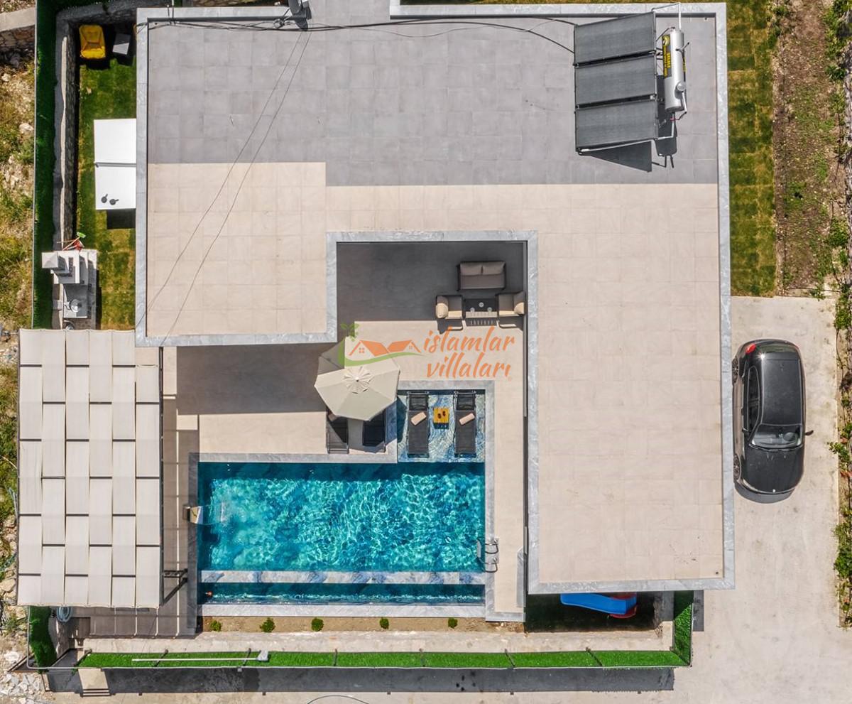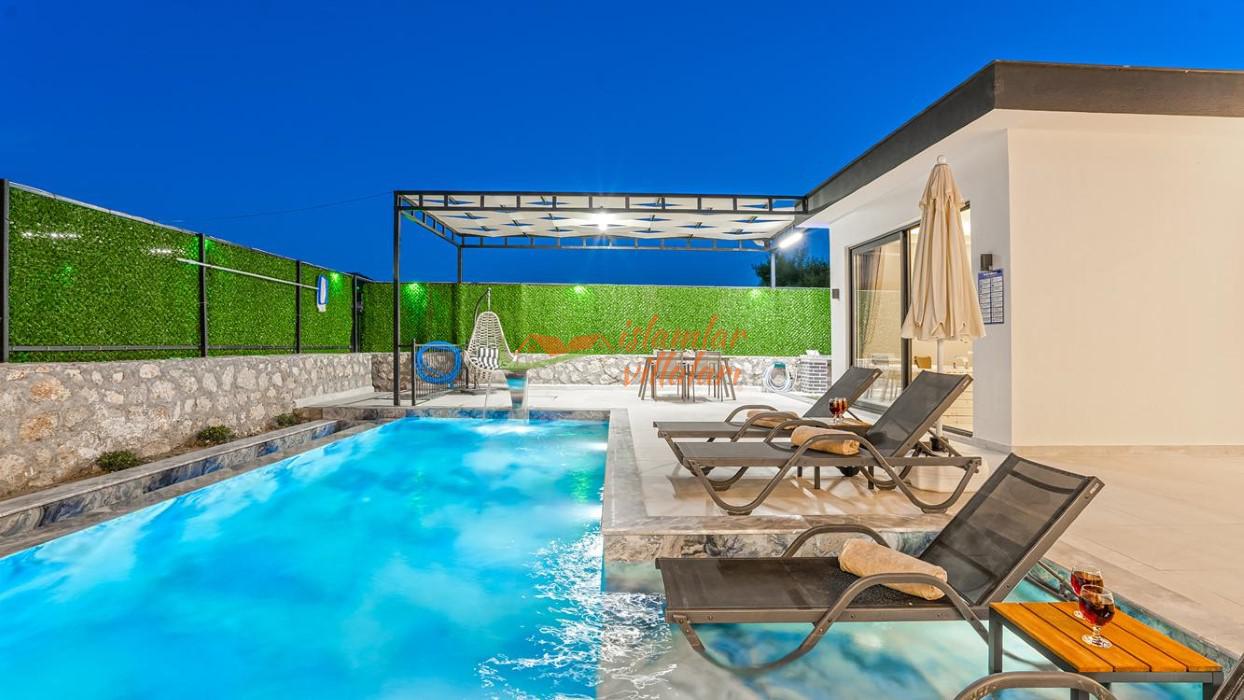 Korunaklı ve Muhafazakar: Havuz terası ve bahçe alanı dışarıdan görünmeyecek şekilde izole edilmiştir. Ailenizle mahremiyet içerisinde tatil yapabilirsiniz.