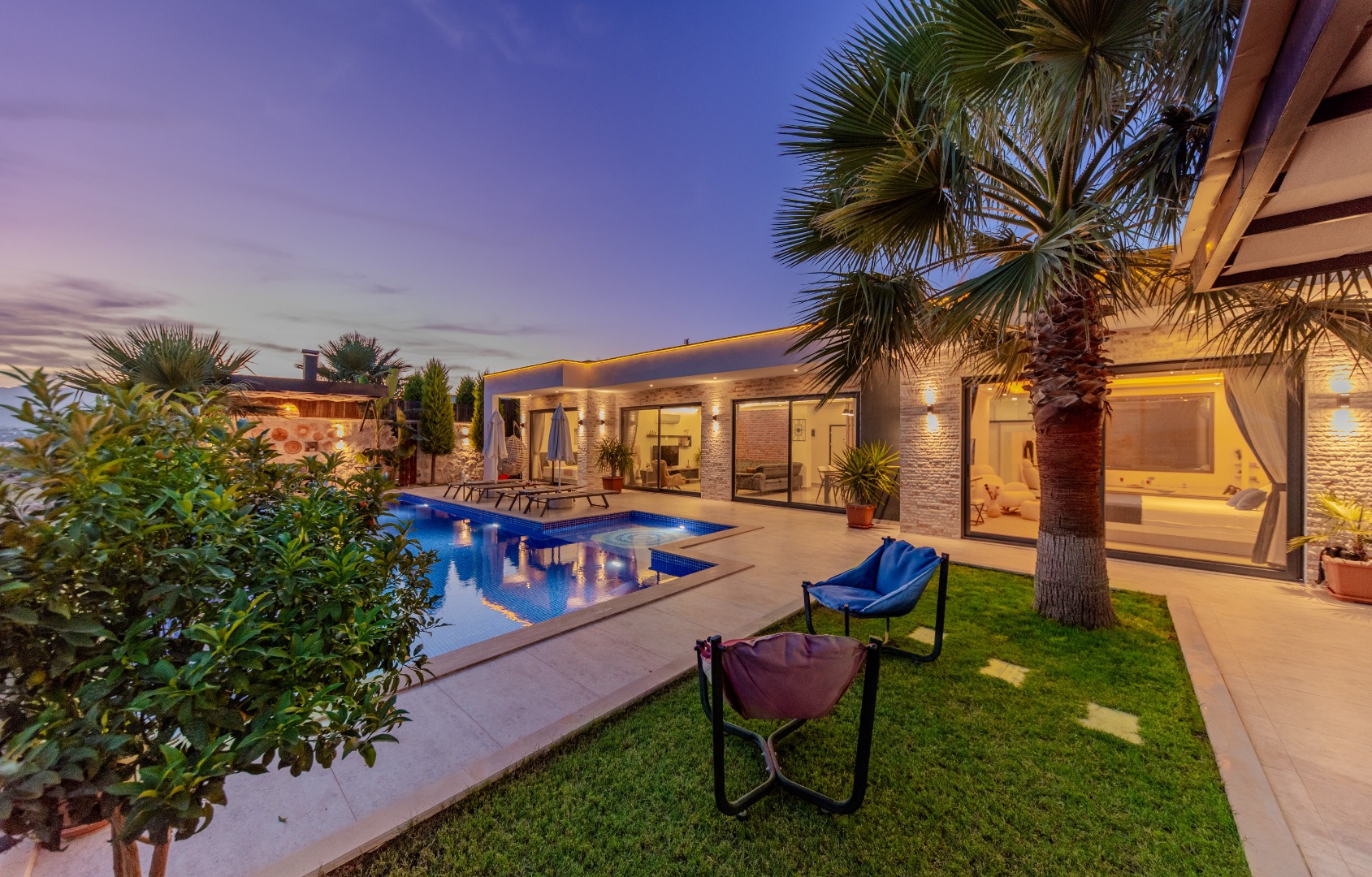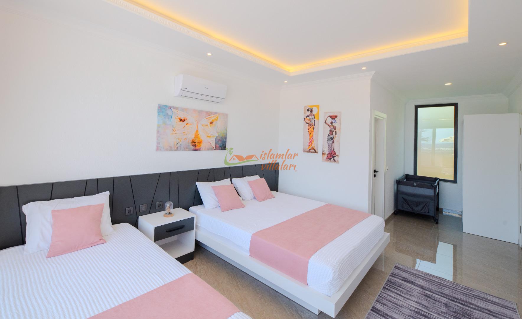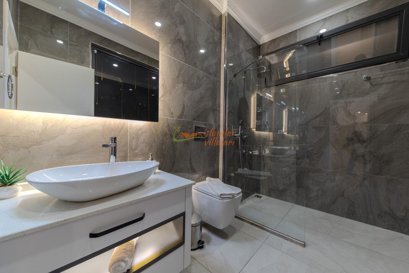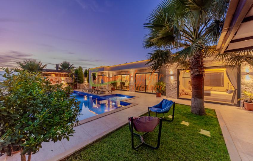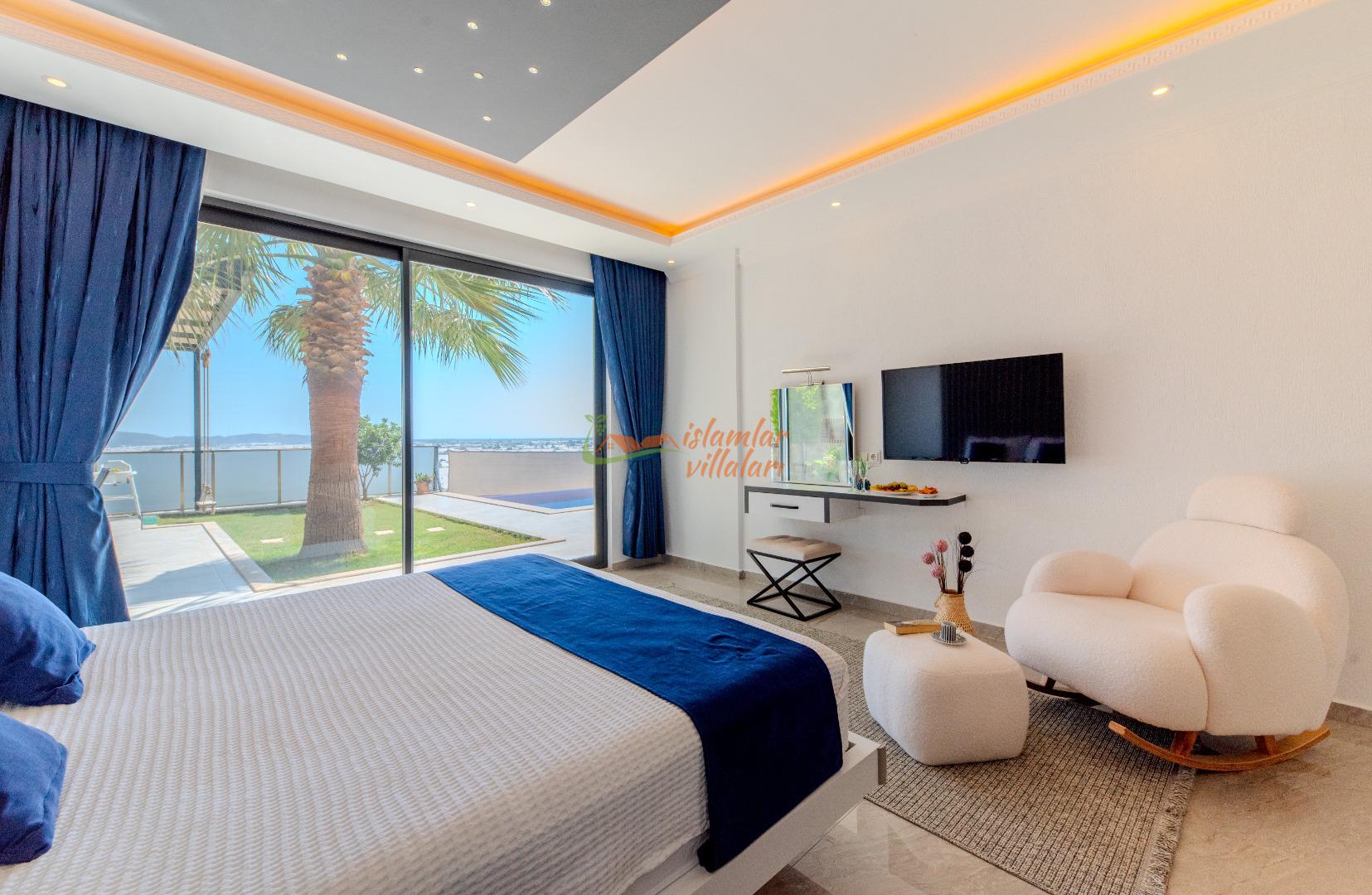 Geniş Havuz ve Muhafazakar Bahçe: Villamızın en dikkat çeken özelliklerinden biri olan geniş yüzme havuzu, size ferah bir kulvar alanı sunar. Havuz terası ve bahçesi korunaklı olup, dışarıdan görünmeden özgürce güneşlenebilir ve yüzebilirsiniz.