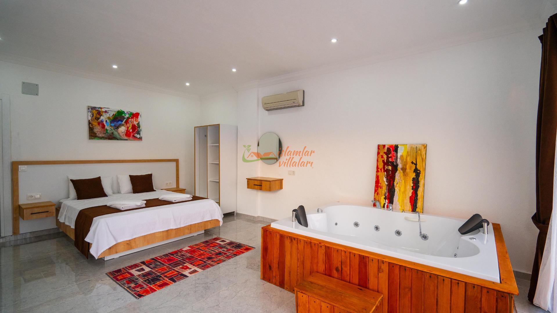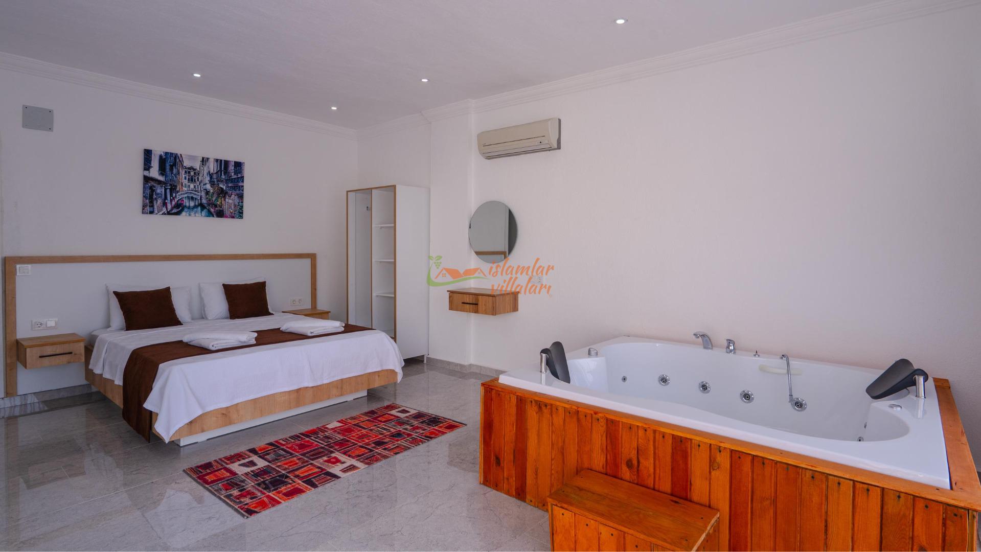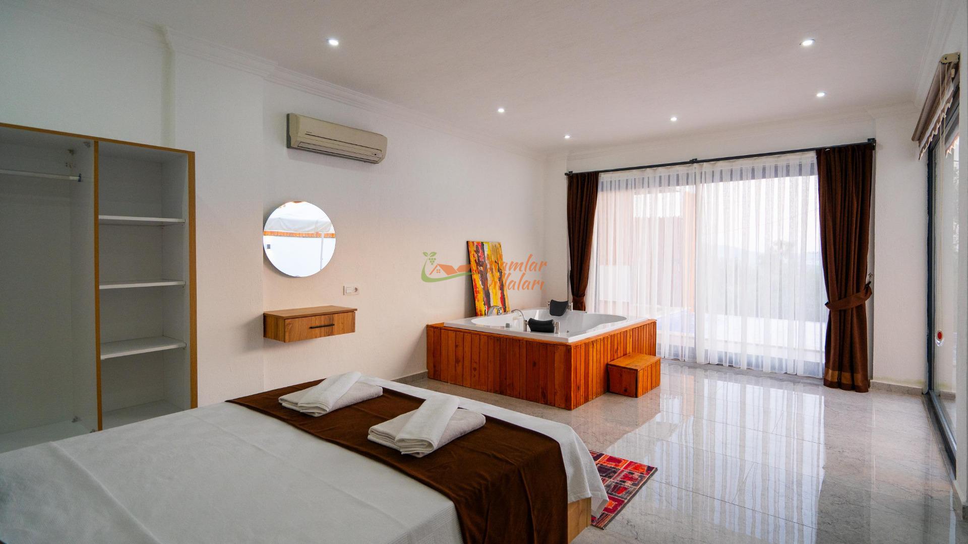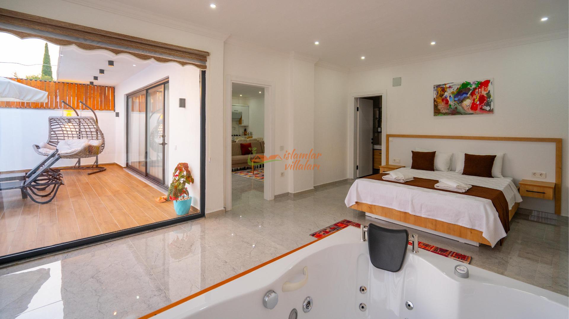 Jakuzi Keyfi: Doğanın sessizliğine karşı, yatak odanızda yer alan jakuzide tüm günün yorgunluğunu atın.