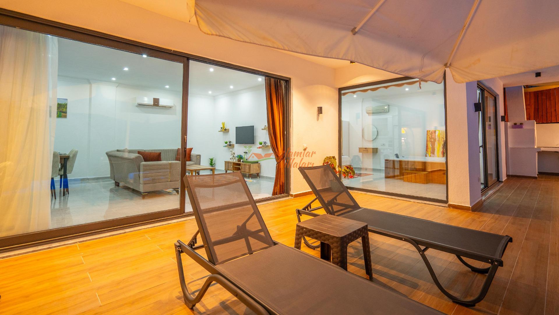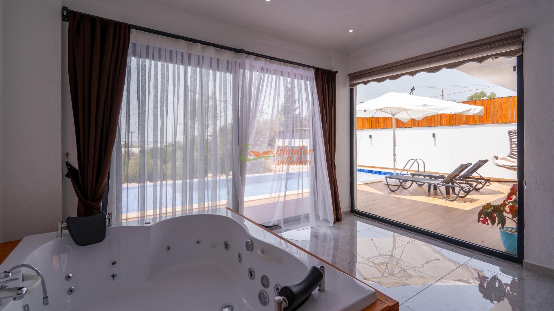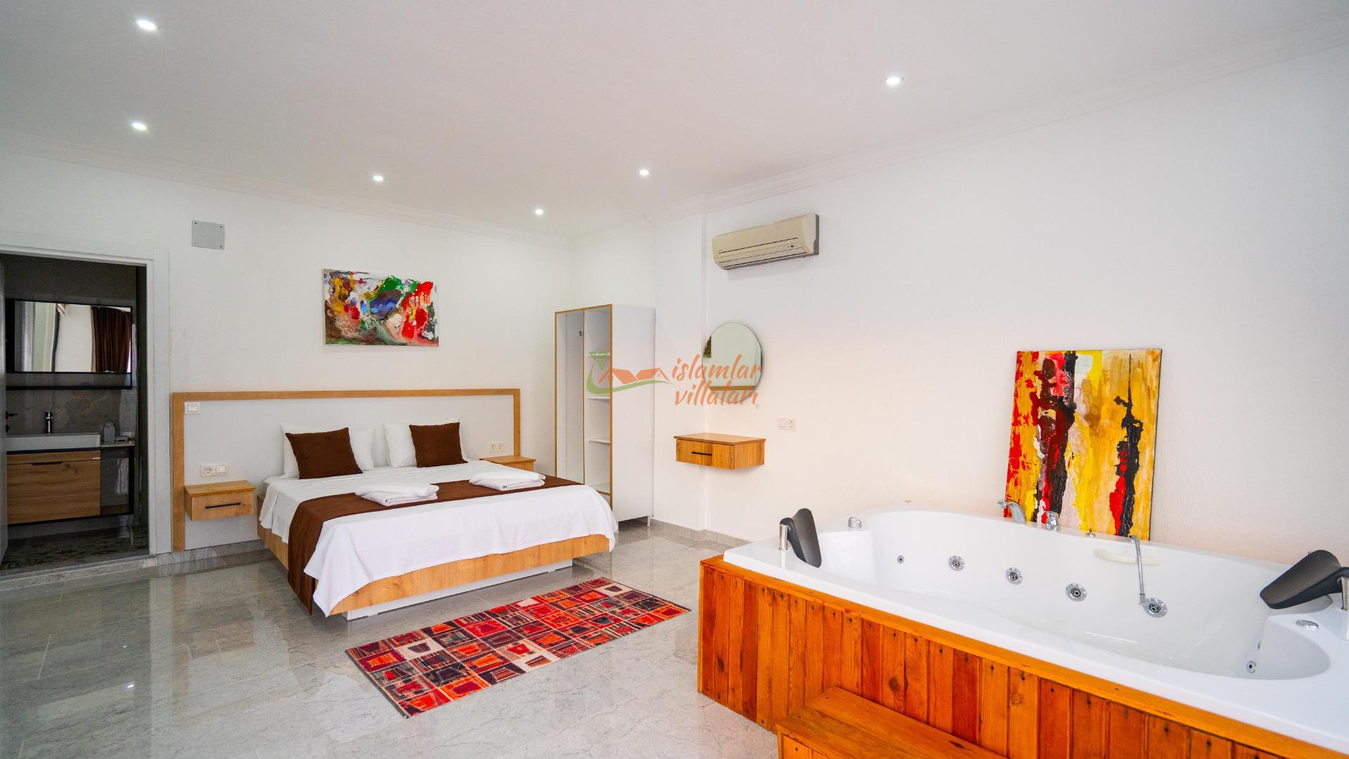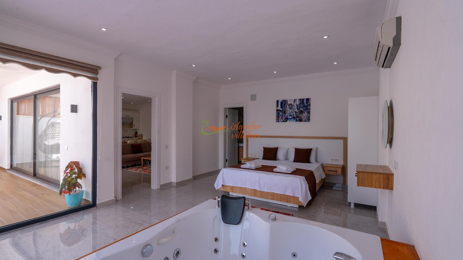 Jakuzi Keyfi: Doğanın sessizliğine karşı, yatak odanızda yer alan jakuzide tüm günün yorgunluğunu atın.