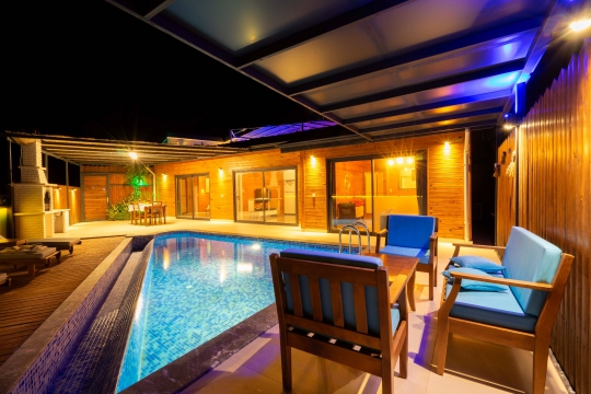 Villa Sakura Kalkan bölgesinin Yeşilköy mevkisinde yer almaktadır. 4 kişi kapasiteli olan villamız 2 yatak odasına ve 2 banyoya sahiptir. Villamızın içerisinde jakuzi yer almaktadır. Havuz alanı korunaklı olup balayı çiftlerimiz ve muhafazakar aileler rahatlıkla tercih edebilir.