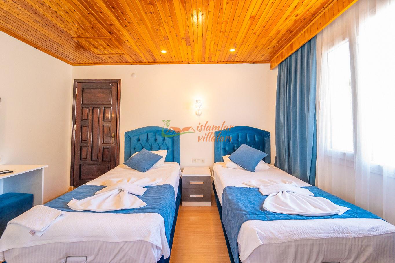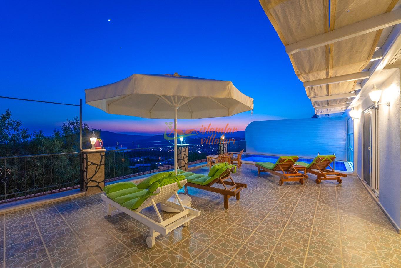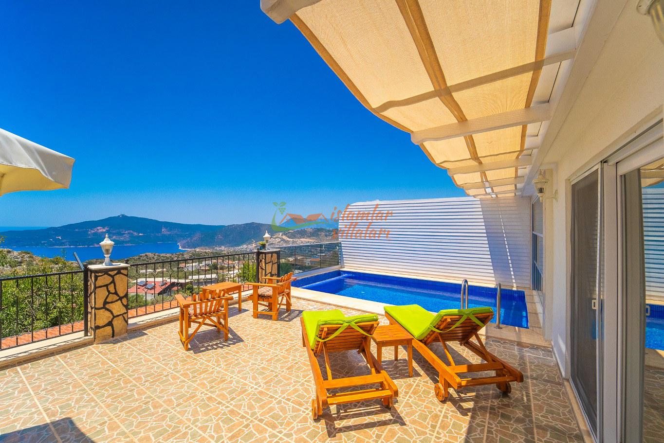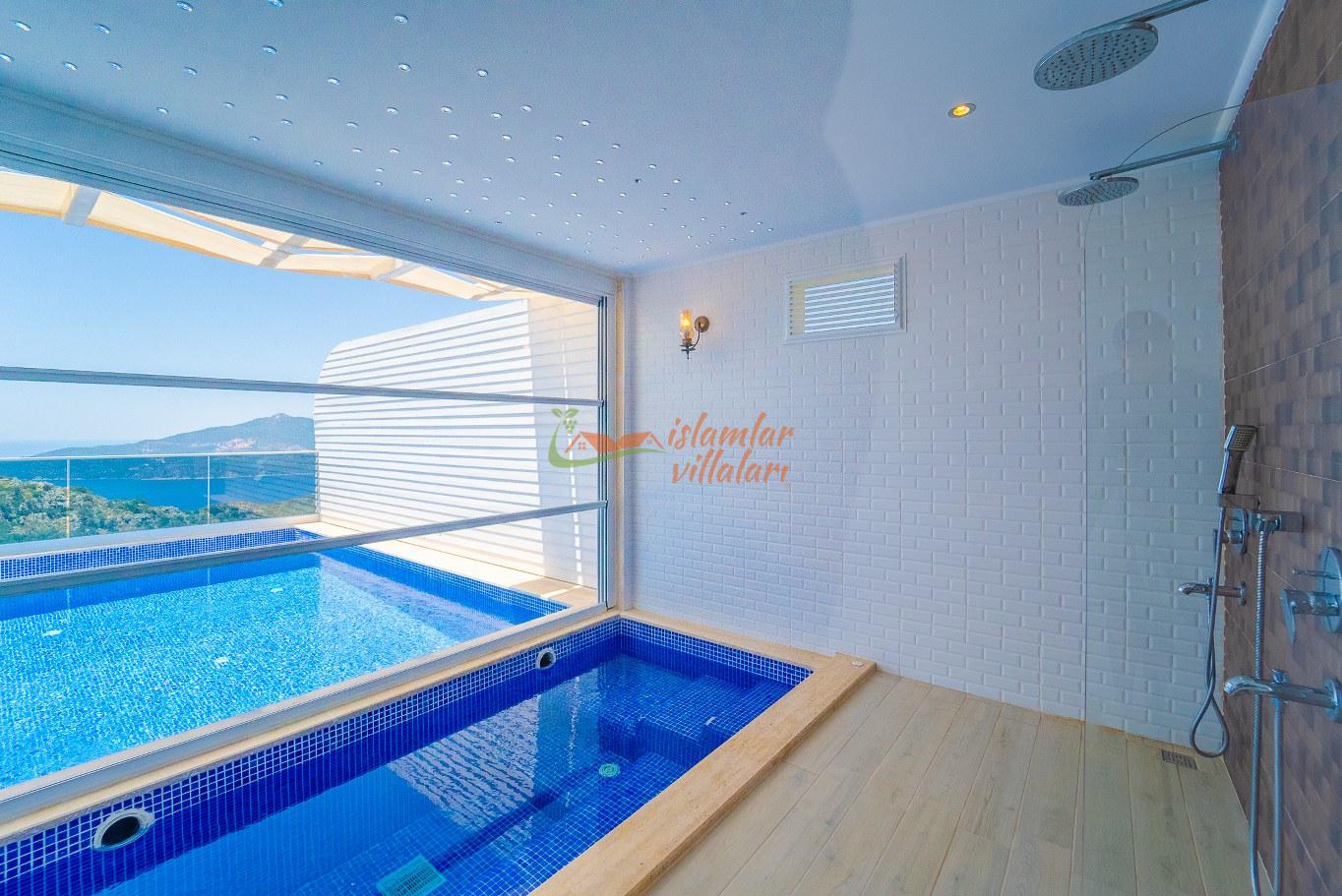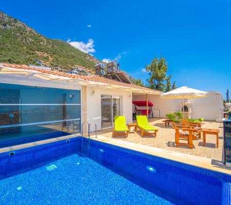 Villa Sinem, Kalkan Kördere mevkiinde bulunan 2 yatak odalı, 4 kişilik konaklama kapasitesine sahip, şık dekorasyonlu muhafazakar villamızdır. Oldukça güzel deniz manzarasına sahip olan villamızda, kapalı ısıtmalı havuz bulunmaktadır. Bu sayede kış aylarında da tatil imkanı sunan villamızın dış havuzu da korunaklıdır. Bu şekilde muhafazakar ailelerimiz rahatlıkla güneşlenebilir ya da havuza girebilirler. Villamız Kalkan şehir merkezine yakın konumu ile size keyifli bir tatil sunuyor.