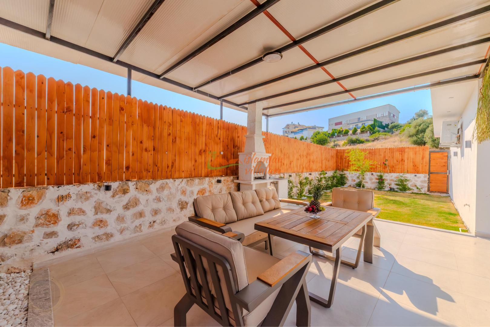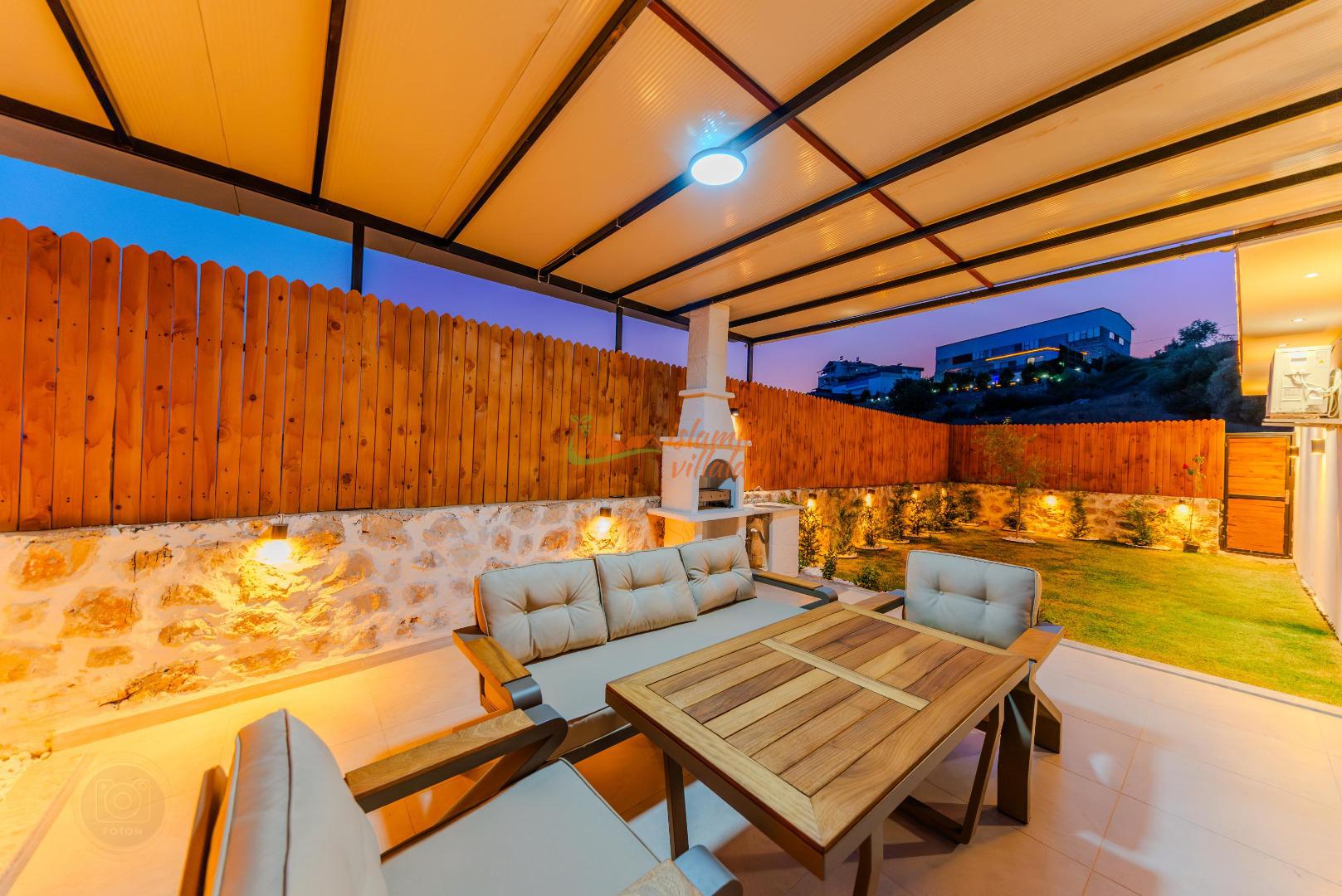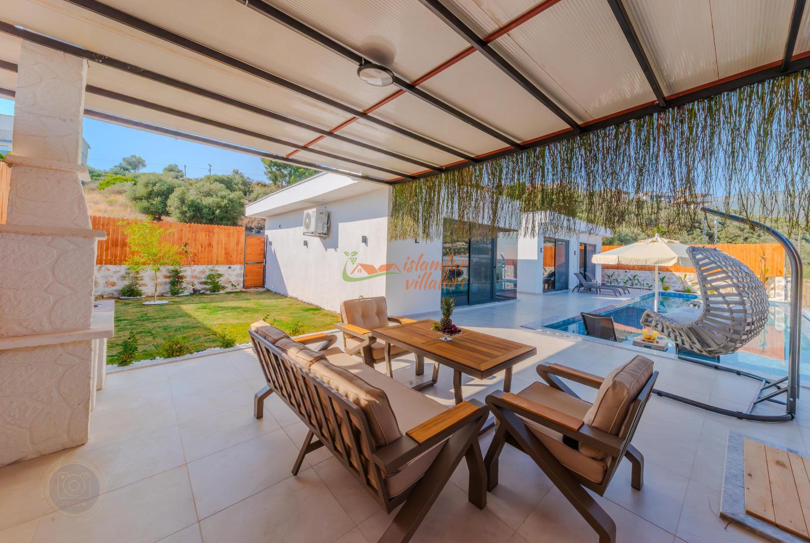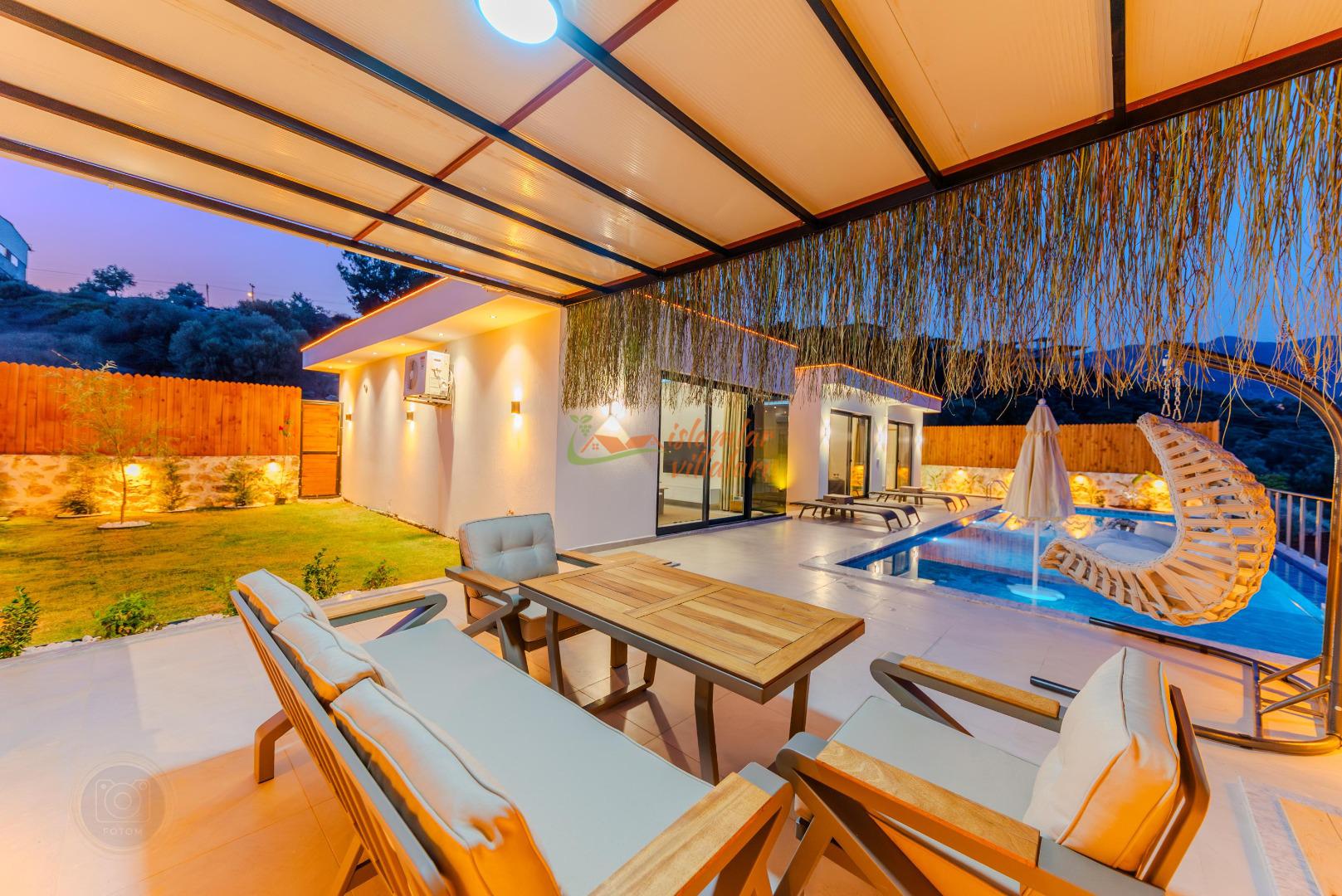 Geniş Havuz Terası ve Bahçe: Villamızın öne çıkan en büyük özelliklerinden biri olan geniş terasında gün boyu güneşin tadını çıkarabilir, şık bahçesinde akşam yemeklerinizi yiyebilirsiniz.