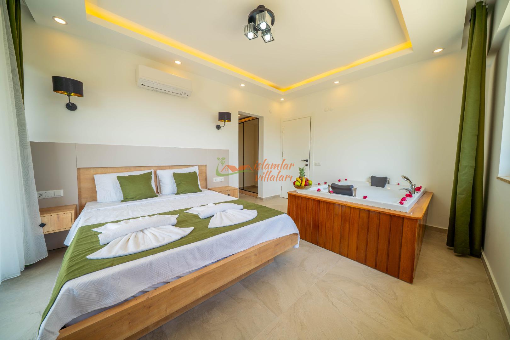 Ebeveynlere Özel Jakuzi Keyfi: Günün yorgunluğunu, mahremiyetinizden ödün vermeden villamızın içerisinde yer alan geniş jakuzide atabilir, tatilinize lüks bir dokunuş katabilirsiniz.