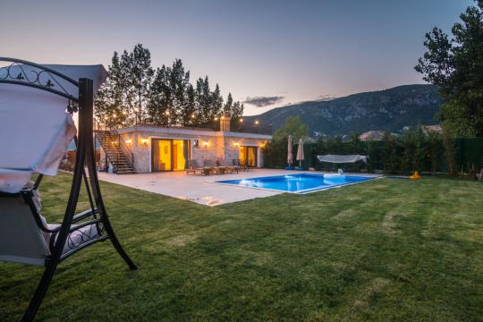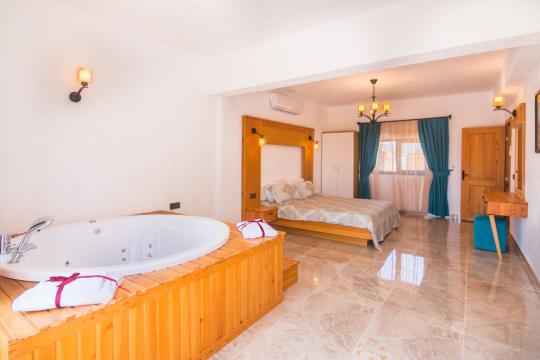 Villa Tiraje, Kalkan Sarıbelen Köyü’nde muhteşem bir doğa içinde bulunmaktadır. Balayı çiftleri ya da çekirdek aileler için oldukça ideal bir villadır. Geniş bir bahçesive ferah kullanım alanları bulunan villamızın her detayı özenle düşünülerek hazırlanmıştır. Oldukça şık bir dekorasyona sahip olan villamızın her köşesi misafirlerini hayran bırakacak niteliktedir. Taş mimariye sahip villamız ahşap detaylarla bezenerek doğal ve keyifli bir yaşam alanı sunmaktadır. Özel muhafazakar havuzu, bahçesindeki keyifli salıncağı ve bahçesinde bulunan kamelyası tatil keyfinizi tamamlar. Şık yatak odasında bulunan geniş jakuzi tüm yılın yorgunluğunu atmanızı sağlar.