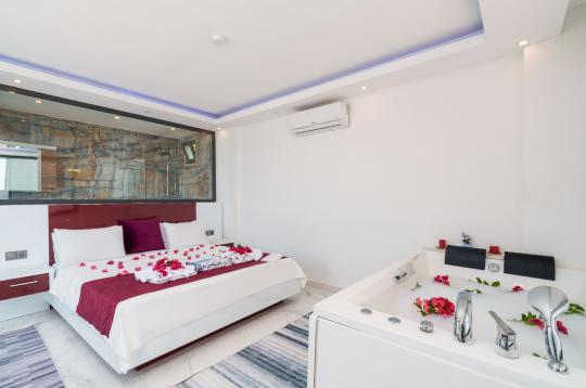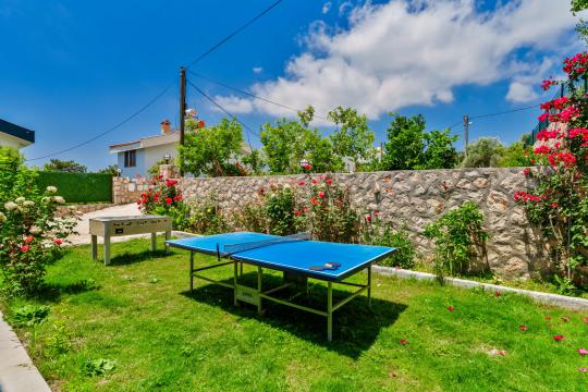 Antalya'nın eşsiz tatil beldelerinden birisi olan Kalkan'ın Akbel mevkiinde bulunan 4 kişi kapasiteli bahçeli, masa tenisi, langırt ve çocuk parkı bulunan villalarımızdan bir tanesidir. Çocuklarını huzur içinde bırakıp tatil yapabileceğiniz bir alana sahiptir. Villamızın havuz etrafı korunaklı olup dışarıdan görünmediği için muhafazakar aile ve arkadaş gruplarınızla gönül rahatlığıyla tatilinizi yapabilirsiniz.