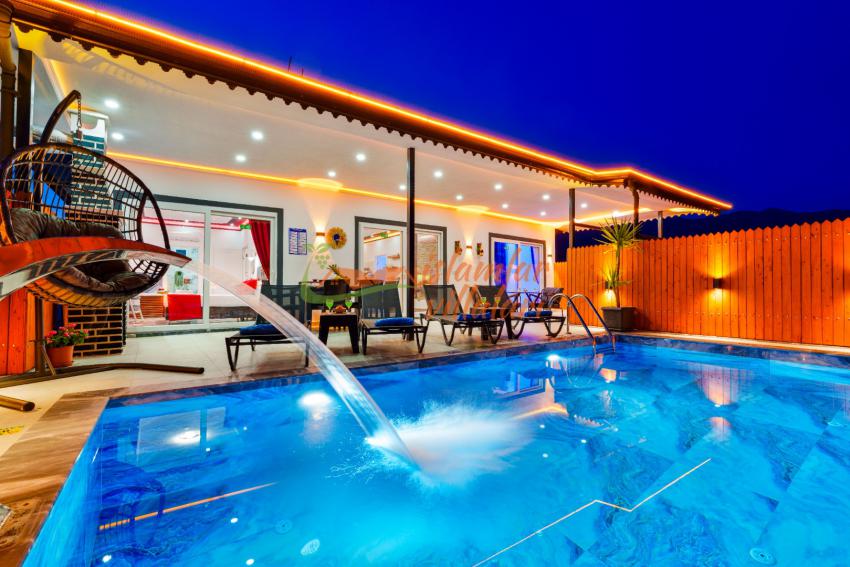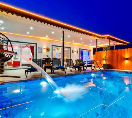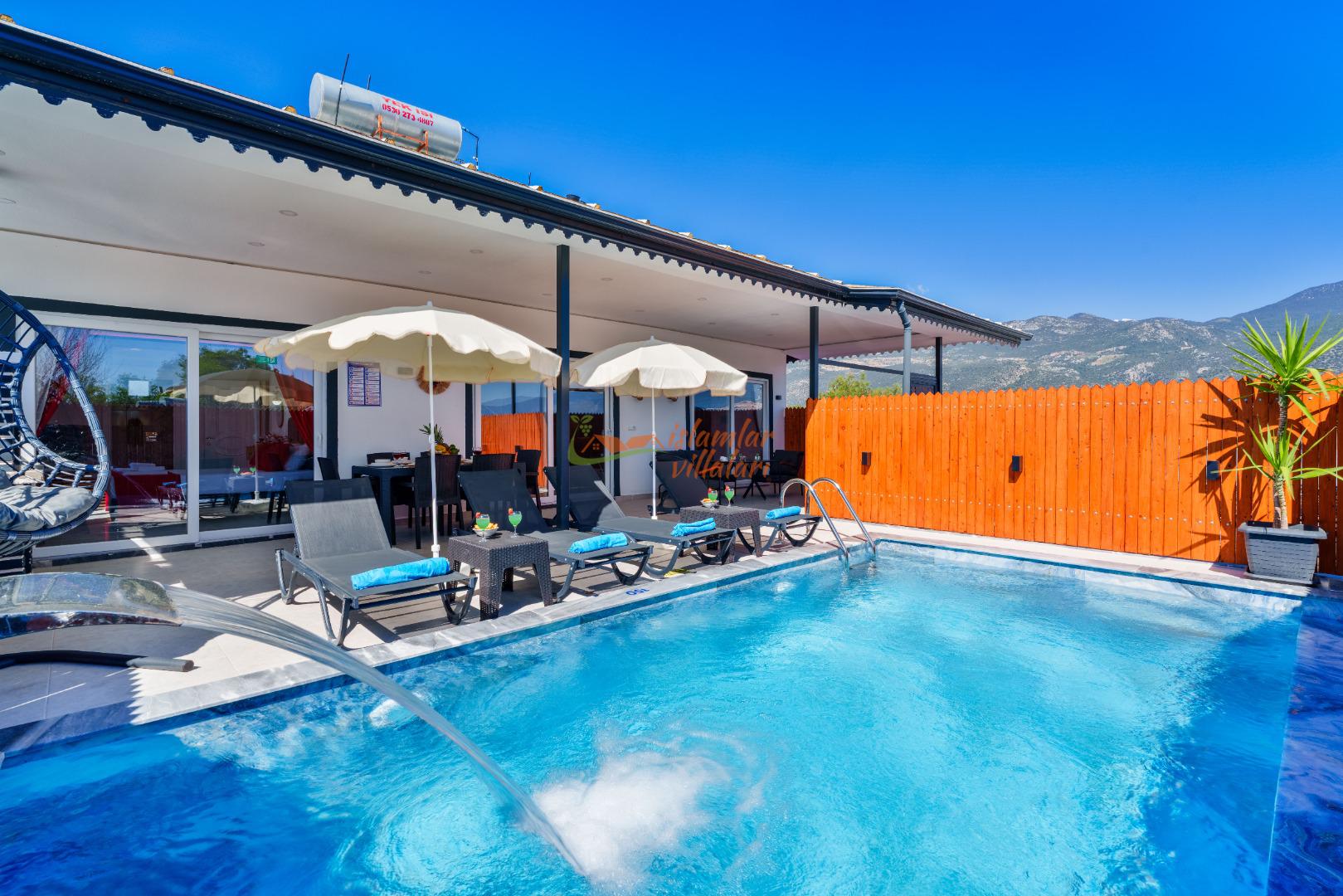 Korunaklı ve Muhafazakar: Villamızın havuz terası dışarıdan görünmeyecek şekilde izole edilmiştir. Ailenizle birlikte gözlerden uzak, güvenli ve özgür bir tatil yapabilirsiniz.