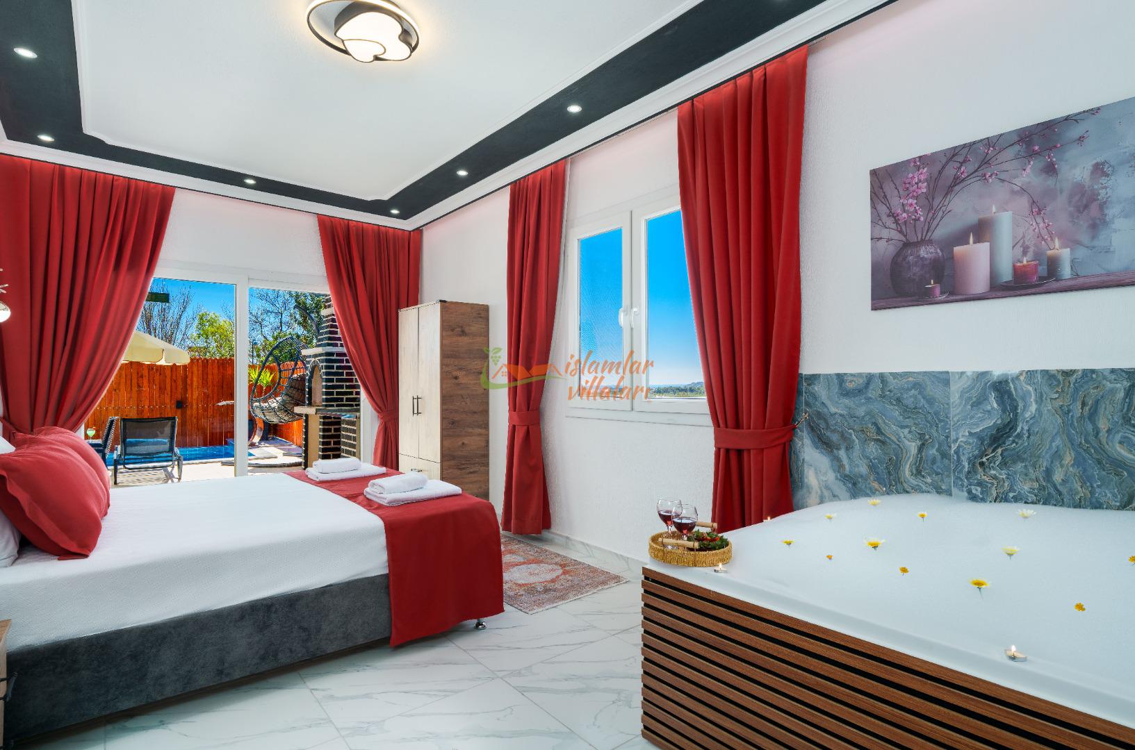 Keyifli Detaylar: Havuz terasındaki salıncakta doğanın sesini dinleyebilir, ebeveyn yatak odasındaki jakuzi ile tüm yılın yorgunluğunu atabilirsiniz.